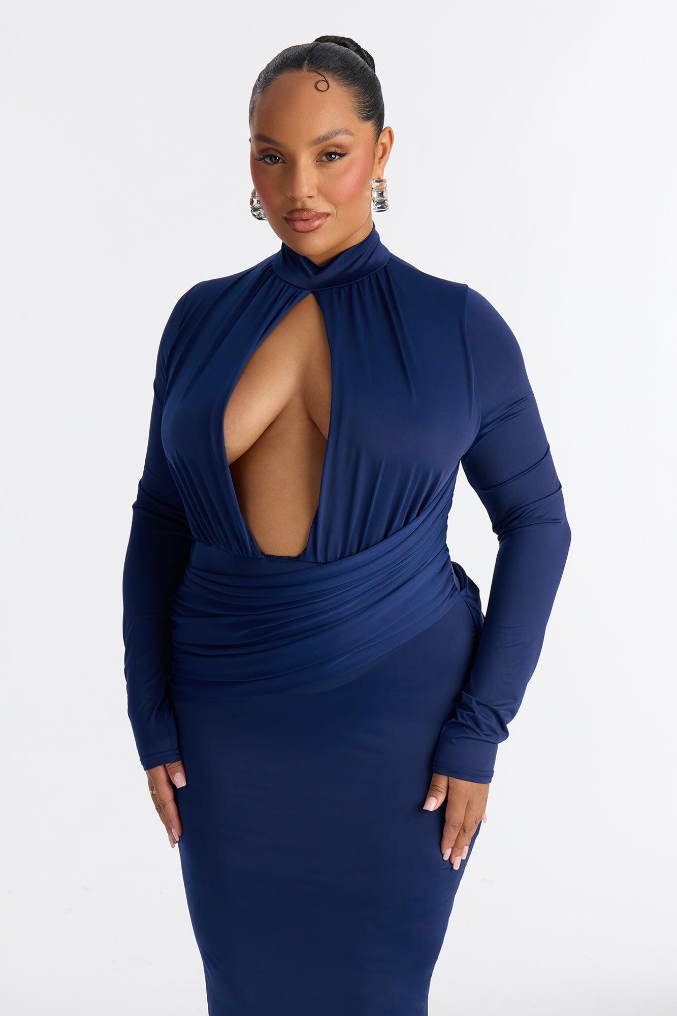 Shania Cut Out Long Sleeve Maxi Dress - Navy Female