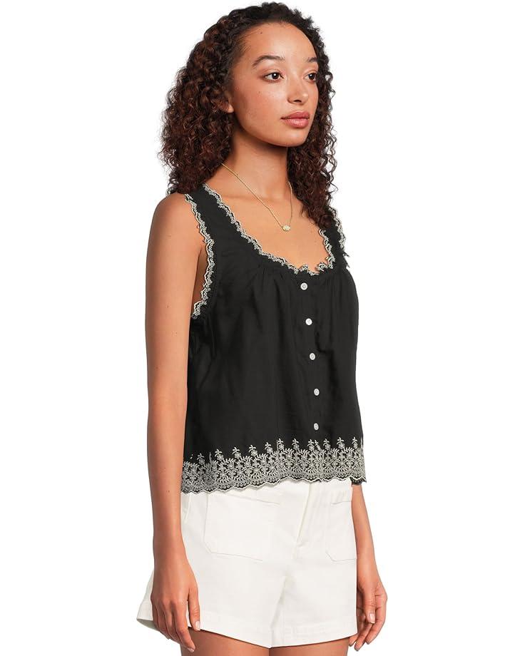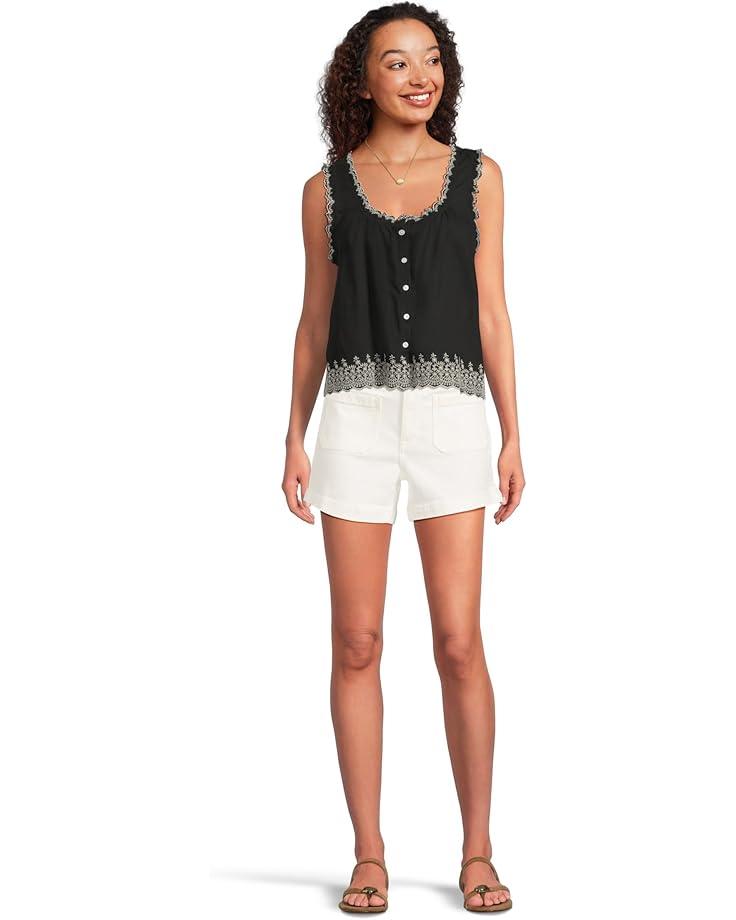 Designed for versatility, this Madewell® Jenny Top - Cotton Viscose Voile top easily transition from desk to dinner. The pullover style features a crew neckline and a sleeveless silhouette with broad and scalloped trim-highlighting straps.