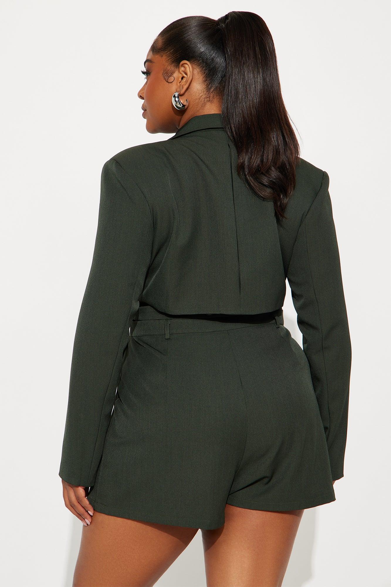 Shantal Bold Shoulder Blazer Romper - Dark Olive Female