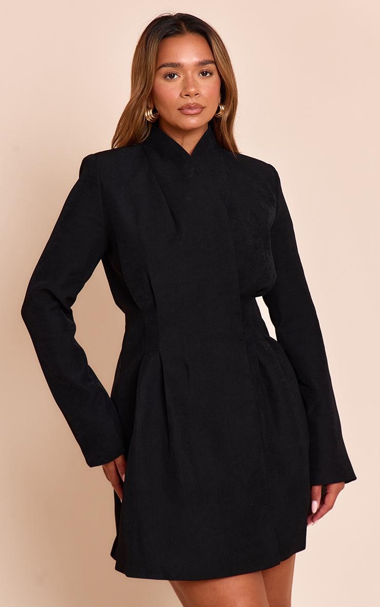 Designed with hourglass figures in mind these curve enhancing tweaks do the most (for both your figure and confidence). PLT Shape looks good on you. Take your look from the office to your evening plans with this shape black cross over cinched waist blazer dress. Brought to you in black material, this dress has a classic blazer design with a cinched waist and a cross over detail. Pair it with barely-there heels and gold jewelry for a sleek look.Length approx 81.5cm/32inch (Based on sample size US 4)Model wears size UK 8/ EU 36/ AUS 8/ US 4Model Height - 5ft 7inchp]:!mb-4inch>Brand: PrettyLittleThingCategory: DressesProduct type: Blazer DressColor: BlackMaterial: Woven CrepeNeckline: V NeckSleeves: LongOccasion: Occasion