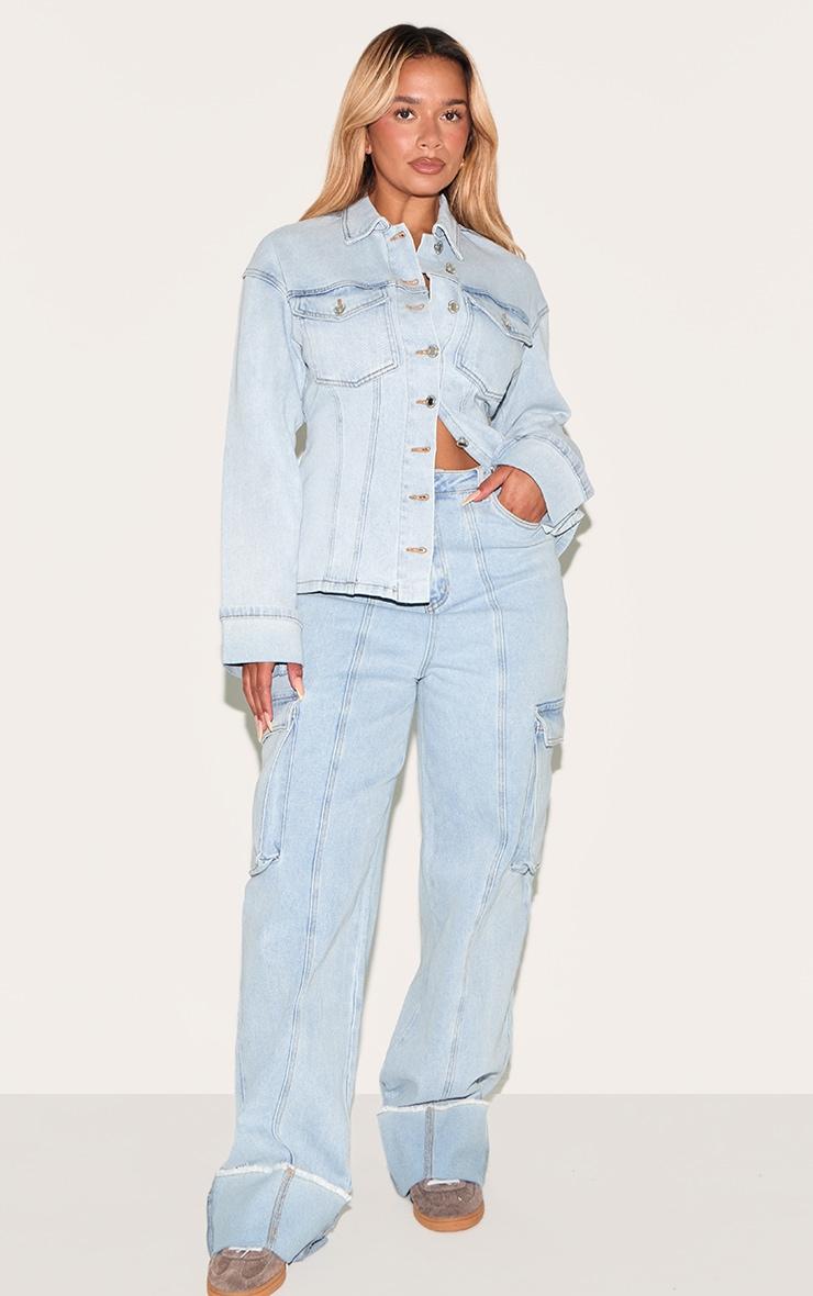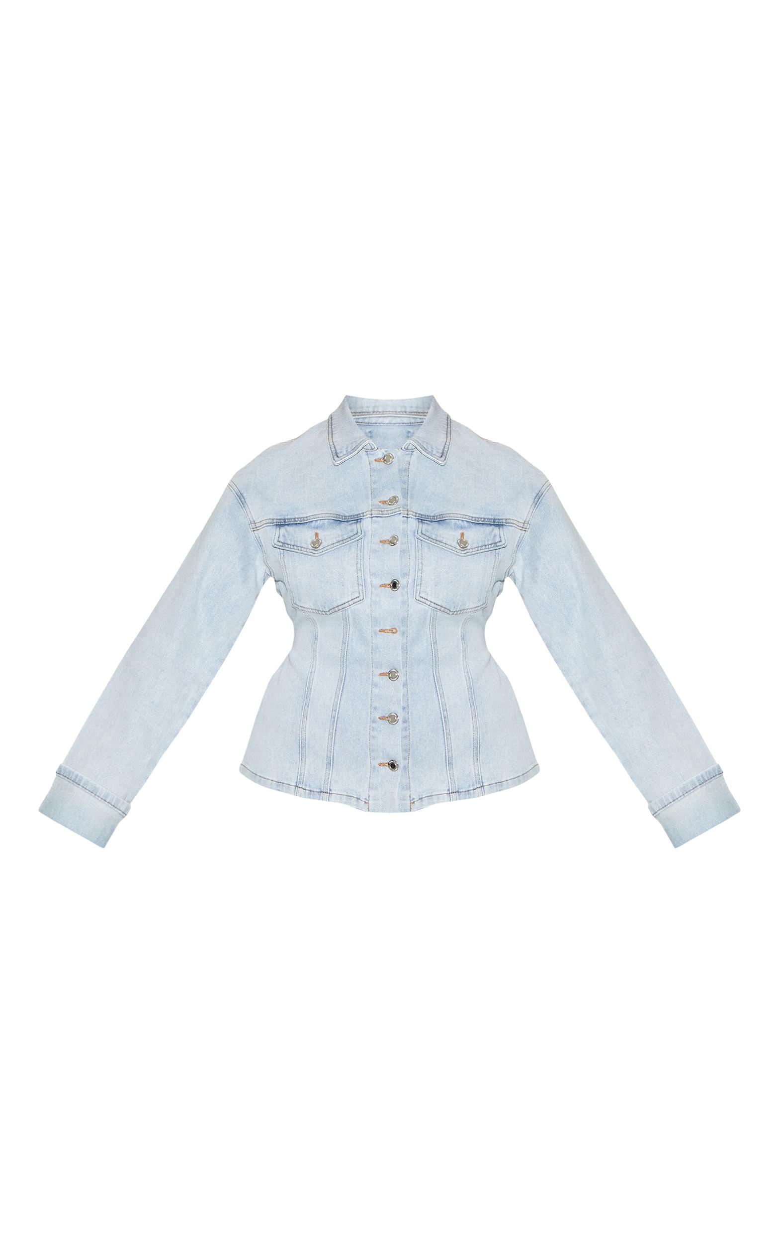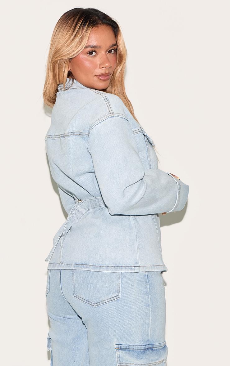 Designed with hourglass figures in mind these curve enhancing tweaks do the most (for both your figure and confidence). PLT Shape looks good on you. Freshen up your layers in this shape light blue stretch denim turn up sleeve adjustable back jacket. Made from light blue stretch denim with turn-up sleeves and an adjustable back for extra versatility. Style over a t-shirt and jeans for an everyday outfit.Length approx 48.5cm/19inch (Based on sample size US 4)Model wears size UK 8/ EU 36/ AUS 8/ US 4Model Height - 5ft 7inchp]:!mb-4inch>Brand: PrettyLittleThingCategory: DenimProduct type: Denim JacketColor: Light BlueSleeves: LongOccasion: Day