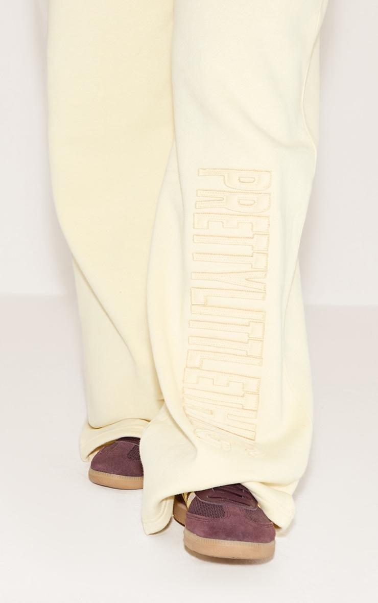 Designed with hourglass figures in mind these curve enhancing tweaks do the most (for both your figure and confidence). PLT Shape looks good on you. Master your day-to-day aesthetic with the shape prettylittlething lemon sweatpants. These sweatpants champion an expansive wide-leg silhouette, offering a relaxed yet considered fit ideal for effortless daywear. The distinctive 'PrettyLittleThing' branding, vertically placed on the lower leg, adds an authentic touch to this off-duty essential. Team them with a relaxed, coordinating hoodie and crisp sneakers for a considered head-to-toe aesthetic. This is how confident style does downtime.Length approx 76cm/30inch (Based on sample size S)Model wears size SModel Height - 5ft 7inchp]:!mb-4inch>Category: AthleisureProduct type: Wide Leg JoggersColor: LemonMaterial: Loopback SweatOccasion: Day