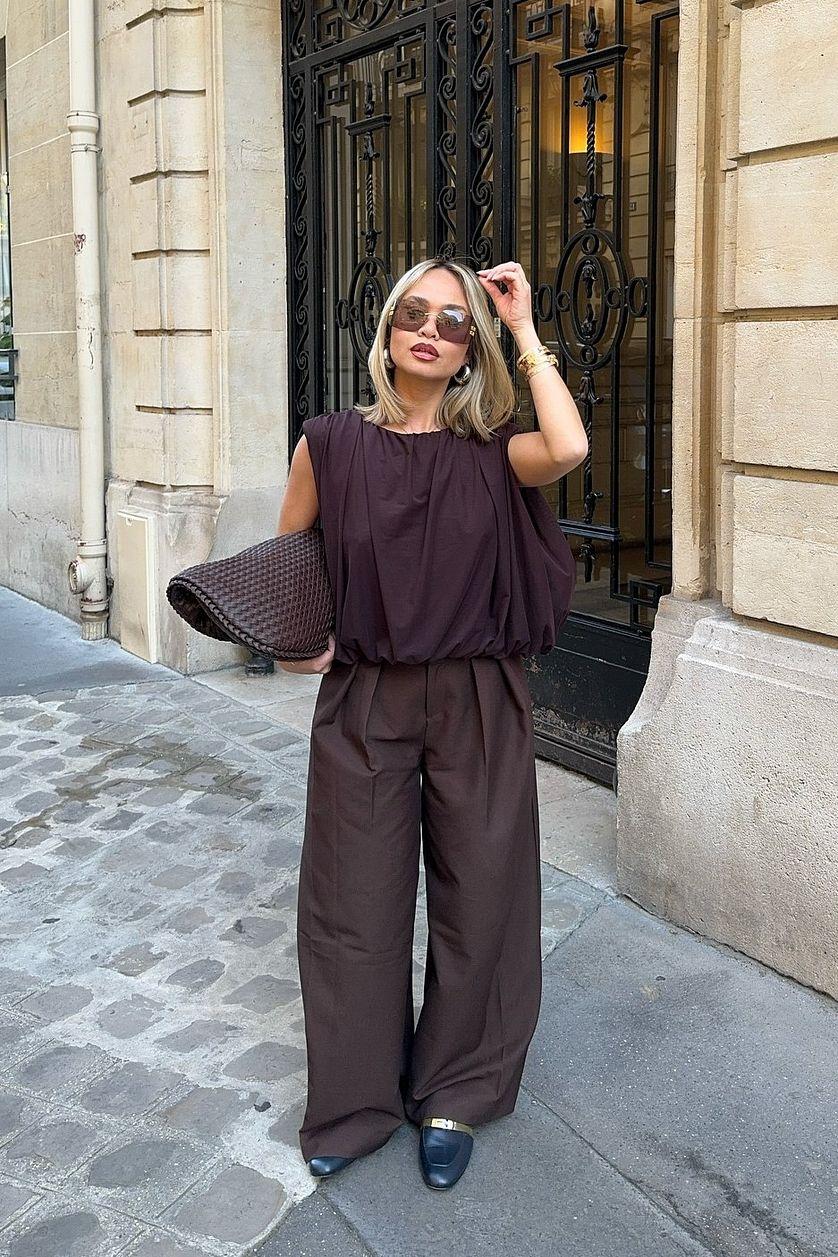 Sharp Hour Tailored Top Brown