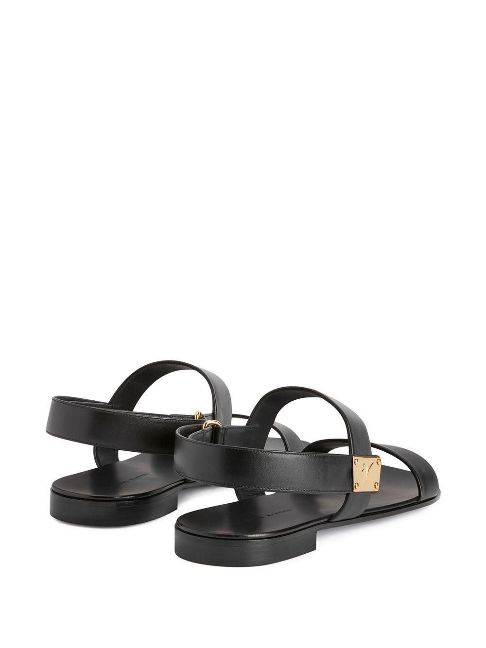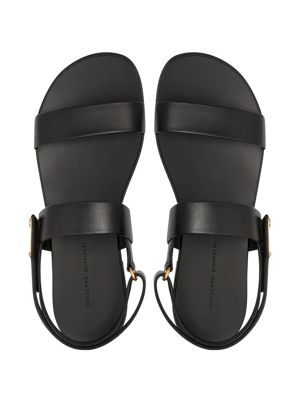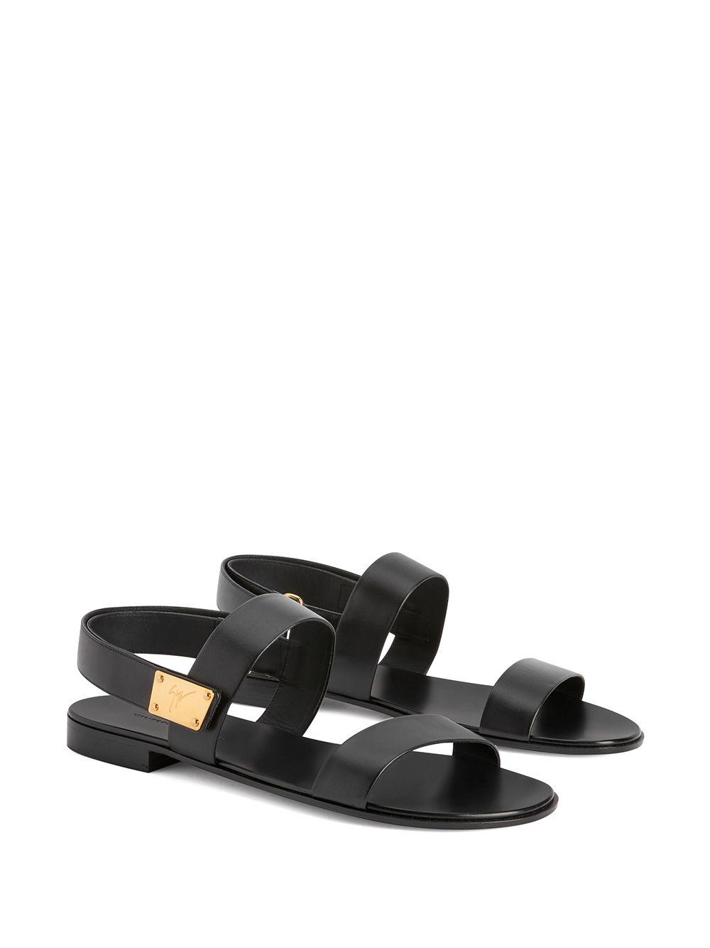 Giuseppe Zanotti brings a rebellious spirit to its SS21 collection, marring metal hardware with understated silhouettes. Crafted from black leather, the Shaun sandals' simple design is punctuated by the logo-engraved gold-tone logo plaque.