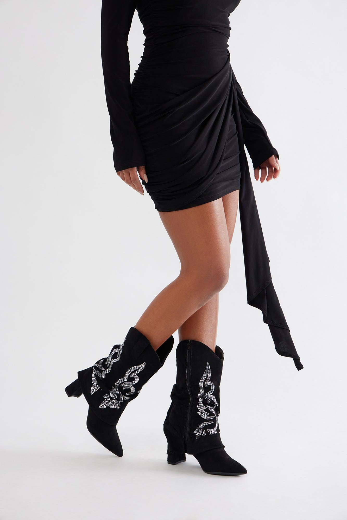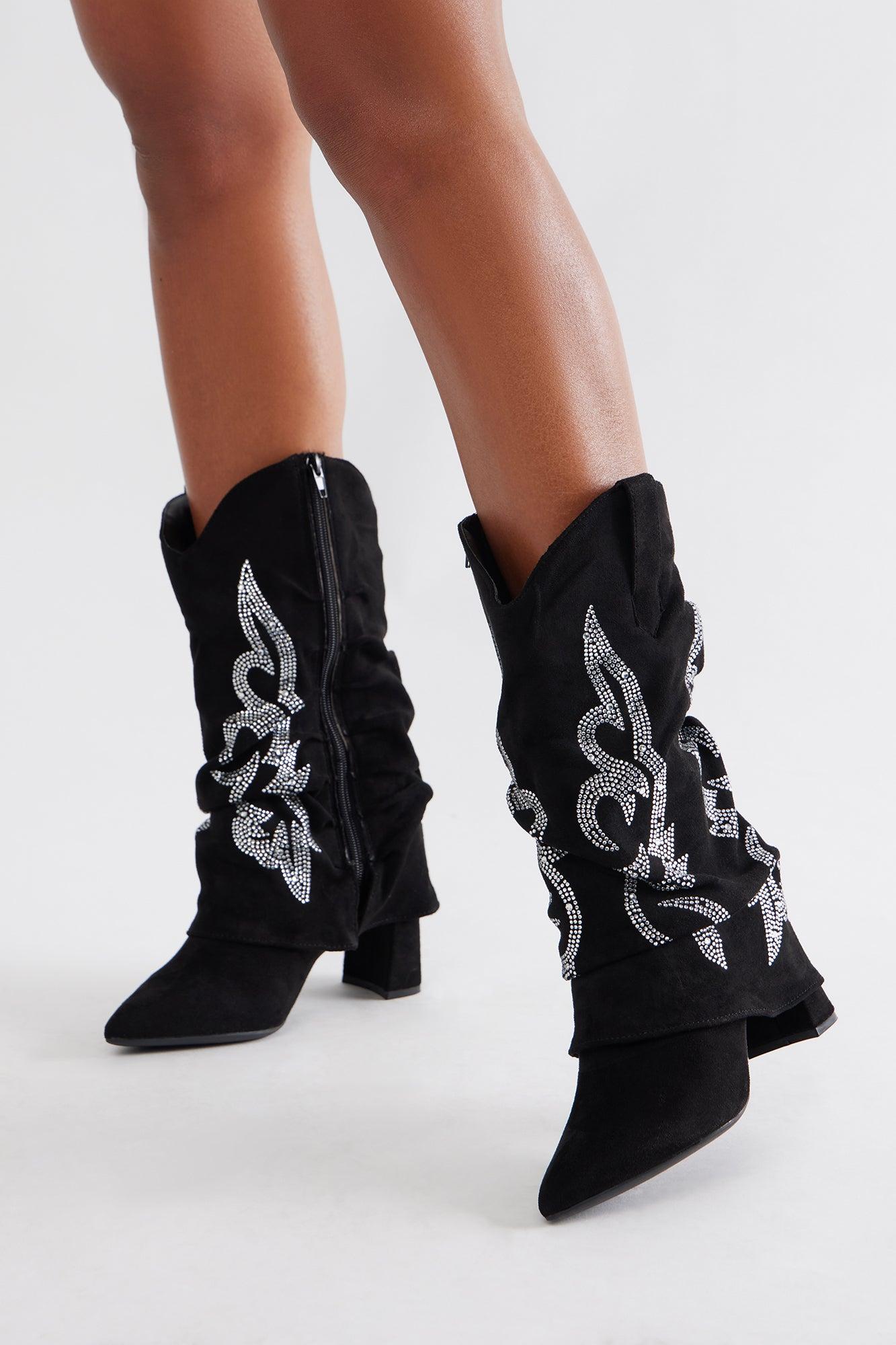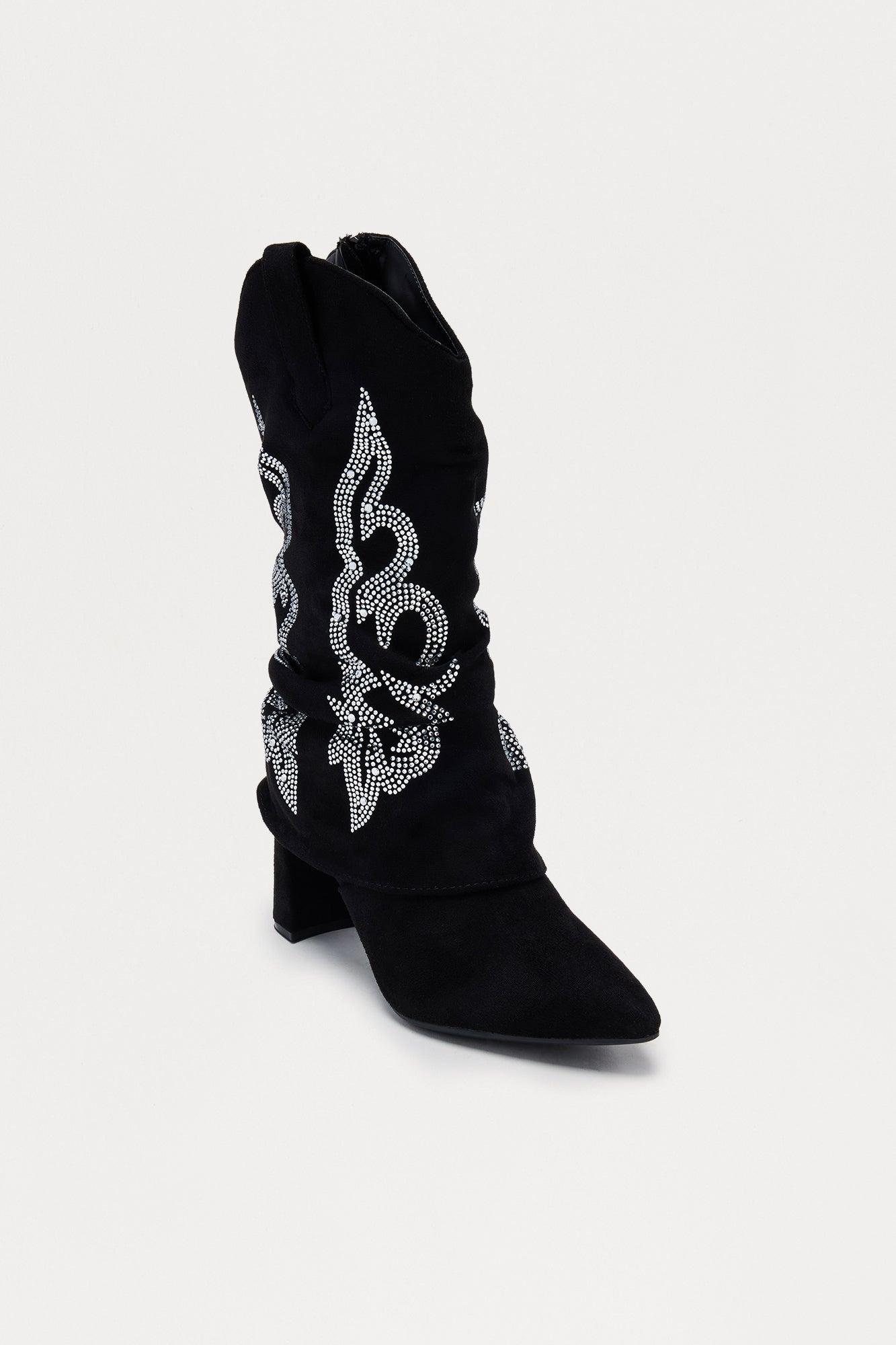 Shaw Rhinestone Cowboy Boots - Black