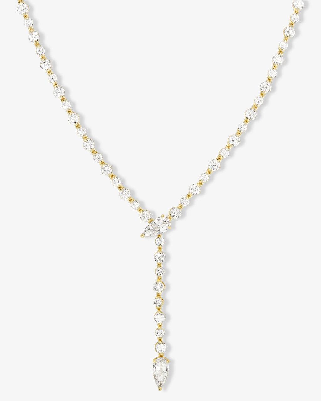 She's arrived and she's fabulous. The She's Arrived Lariat Tennis Necklace brings sleek sophistication with its delicate line of sparkling simulated diamonds that cascade into a pear-cut drop. Perfect for adding a touch of glam to any outfit, the Y-shape elongates your neckline, making this piece as flattering as it is fabulous. Wear it solo or layered for maximum impact-either way, it's designed to turn heads.