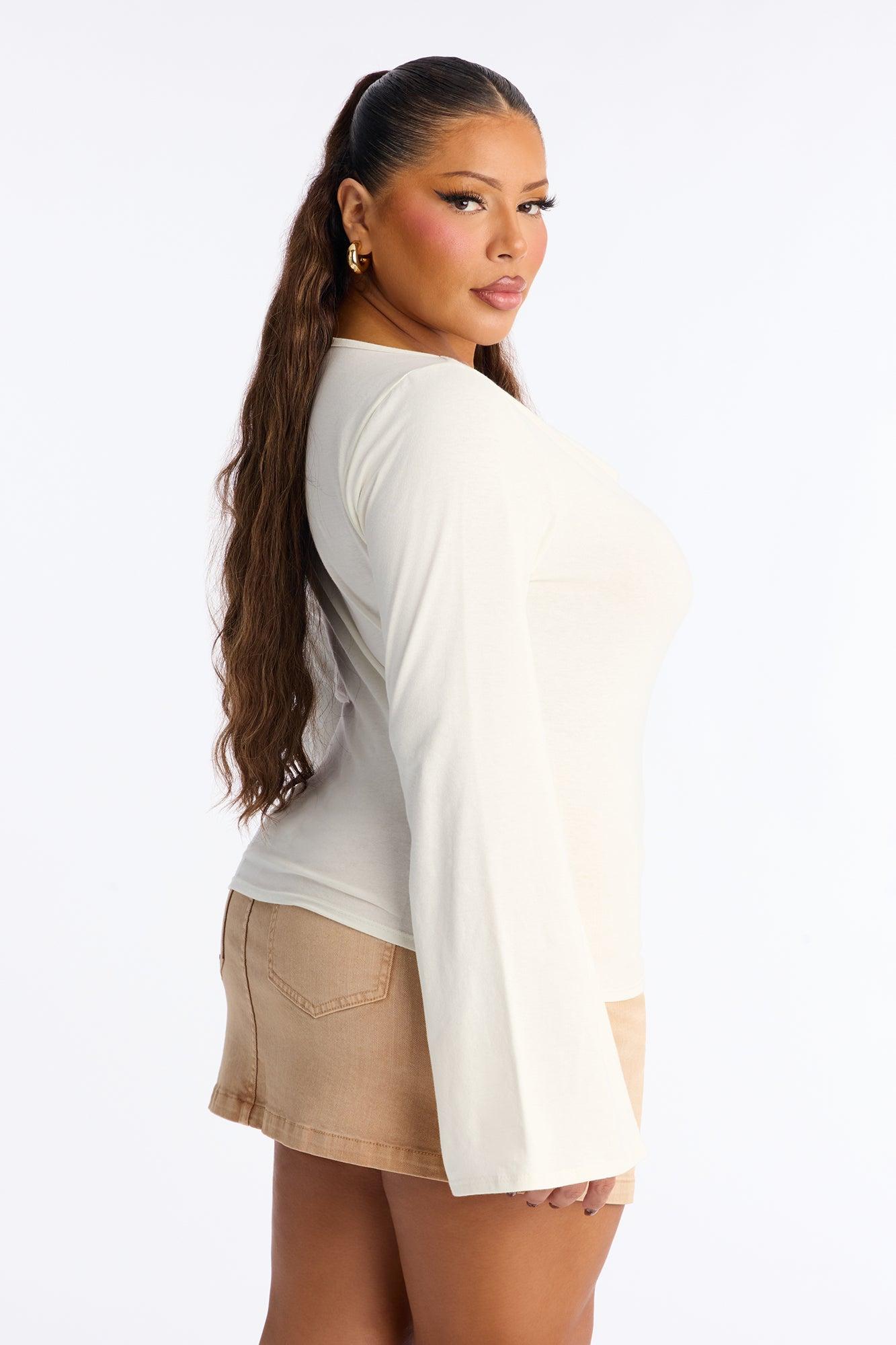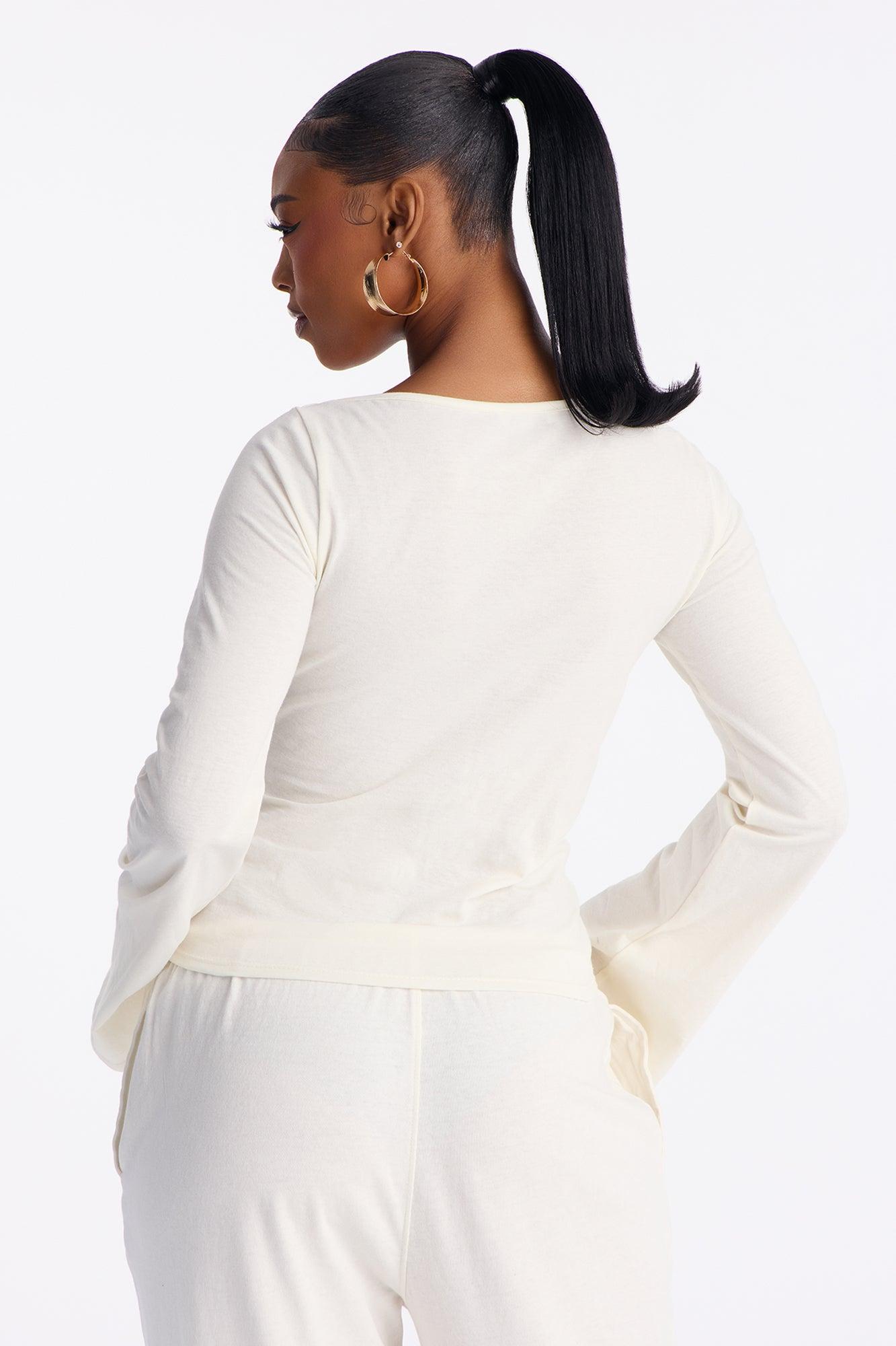 She's Effortless Cowl Neck Long Bell Sleeve Top - Ivory Female