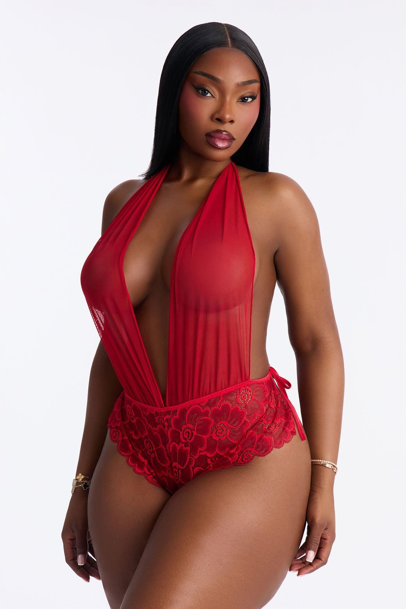 Sheer Silence Mesh Lace Teddy - Red Female