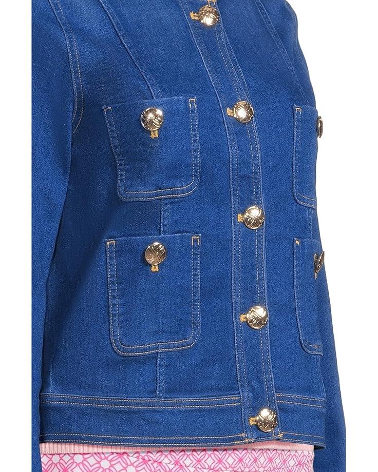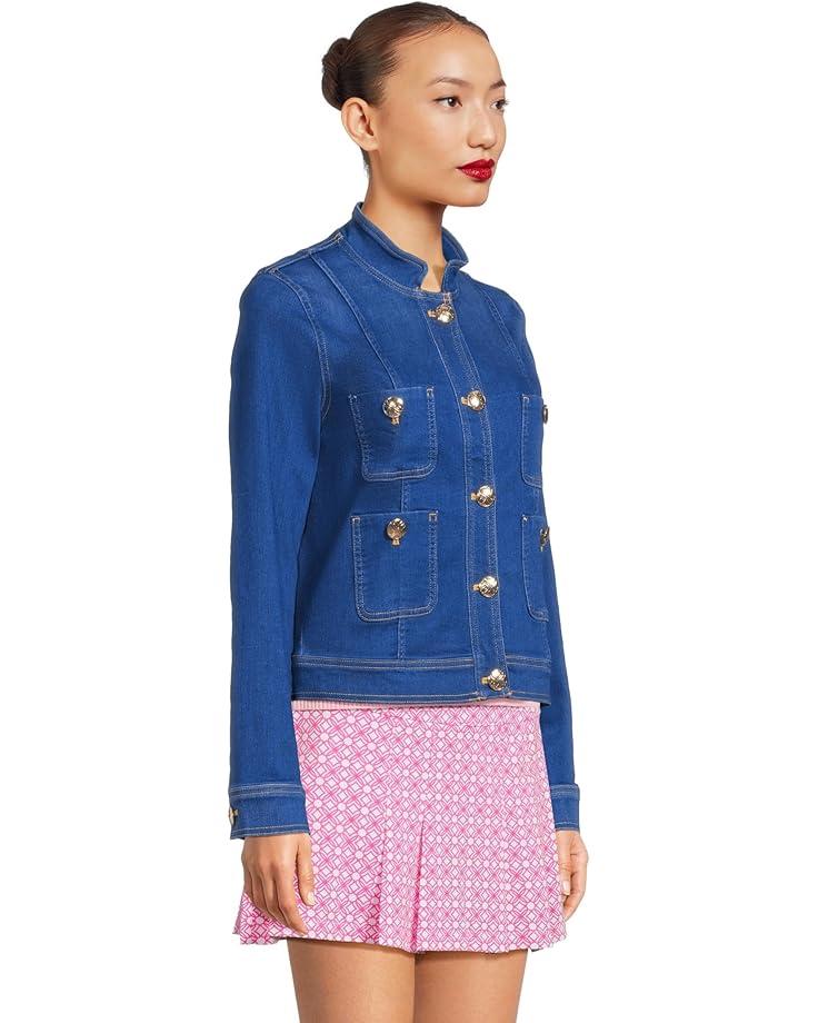 Create versatile styling possibilities for different occasions with the Lilly Pulitzer® Shepa Denim Jacket in a straight silhouette. The jacket features a mandarin collar, full front-button closure, four utton-through bpatch pockets on the front, long sleeves with buttoned cuffs, and a straight hem.