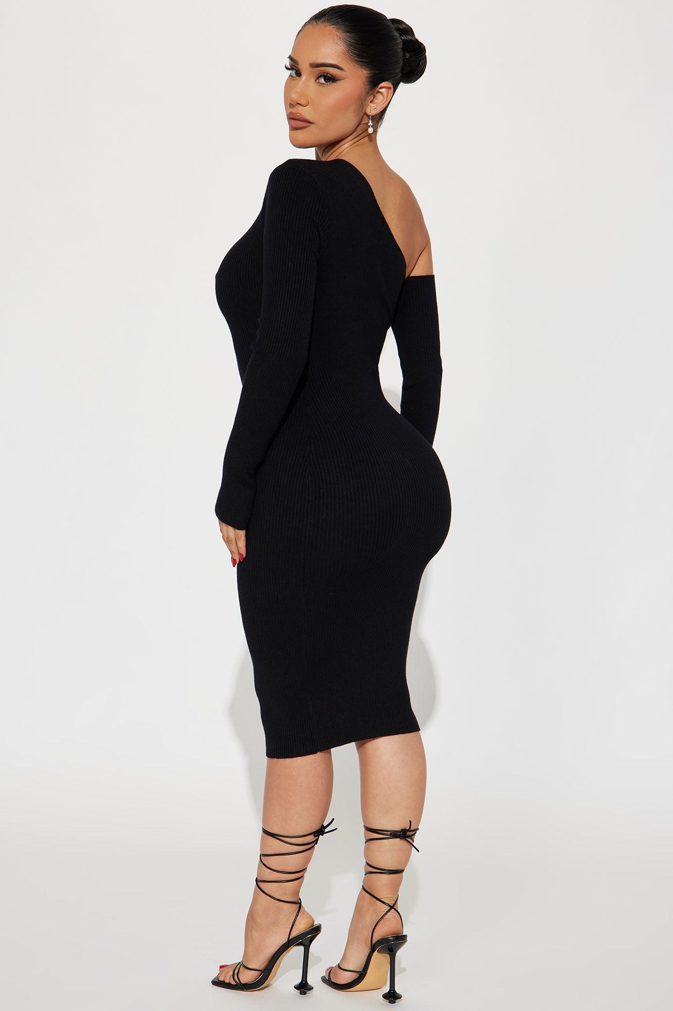 Shes Ready To Go Midi Sweater Dress - Black Female