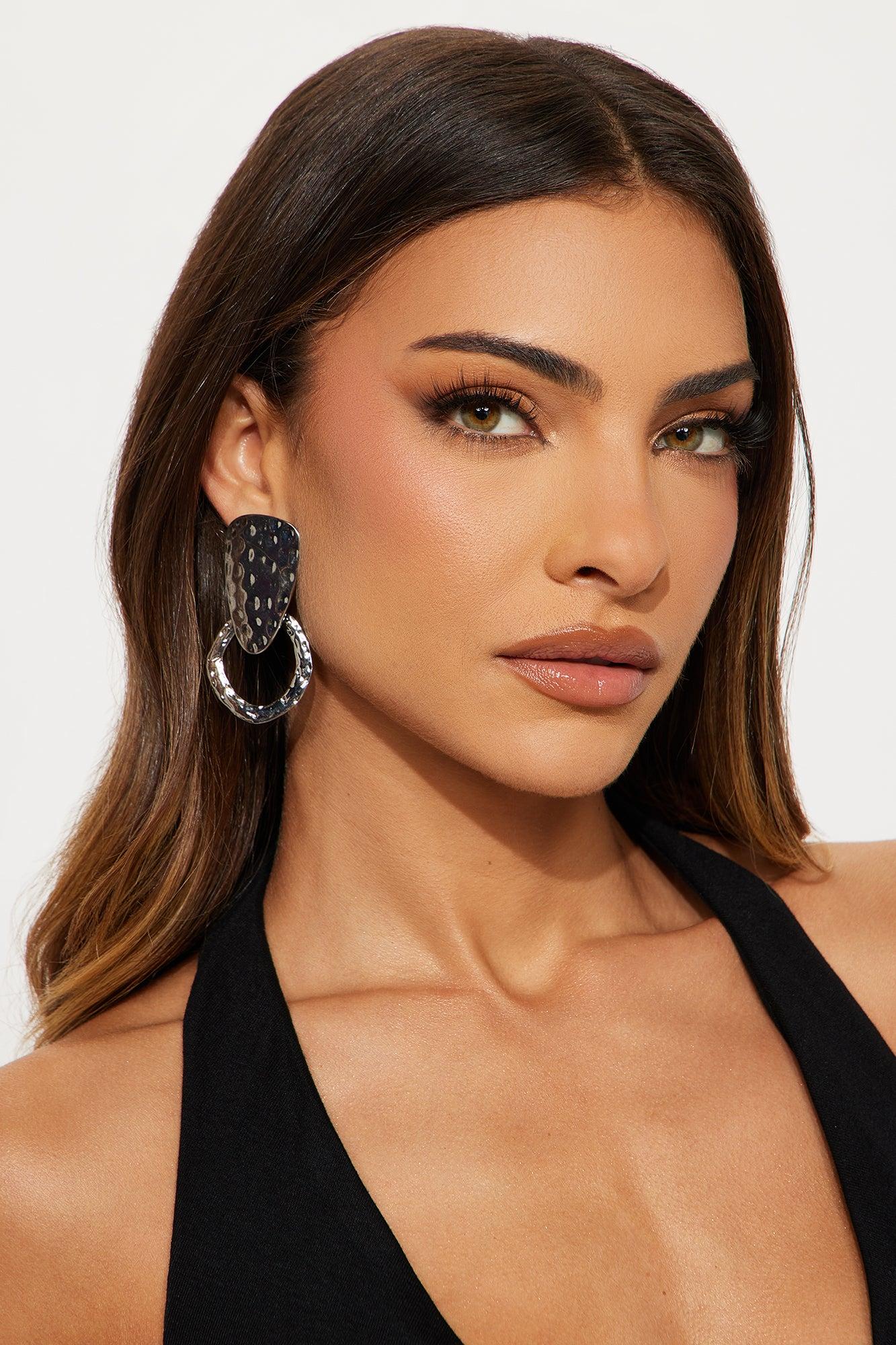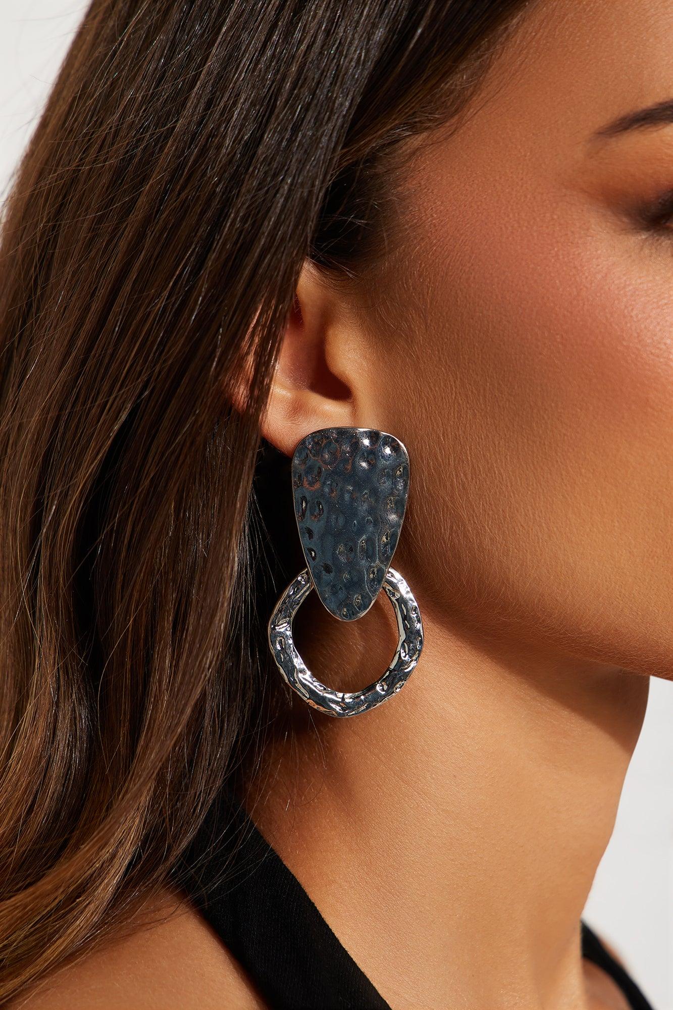Available In Silver. Drop Earrings Hammered Hardware Detail Post Back Closure Final Sale Imported