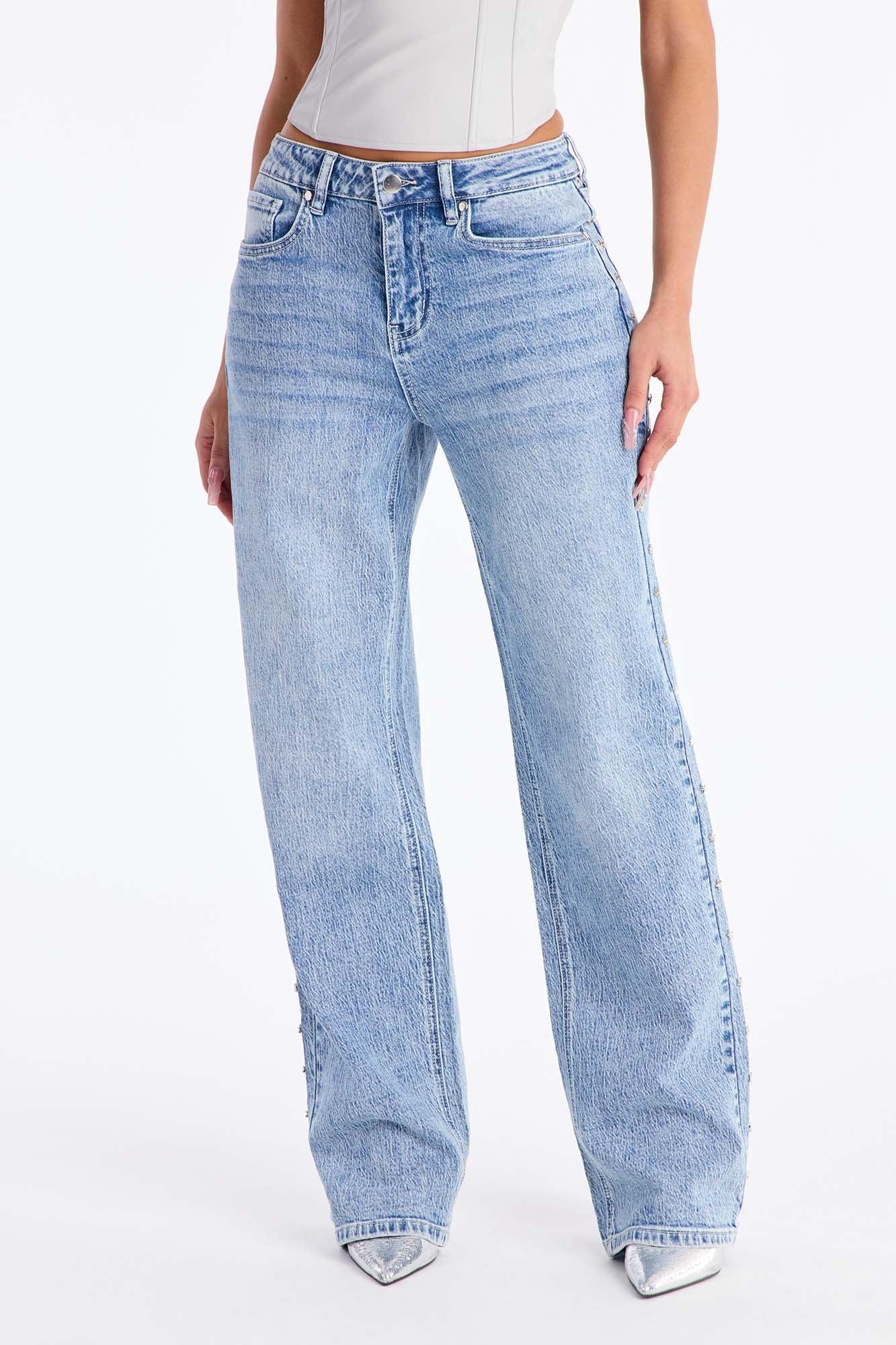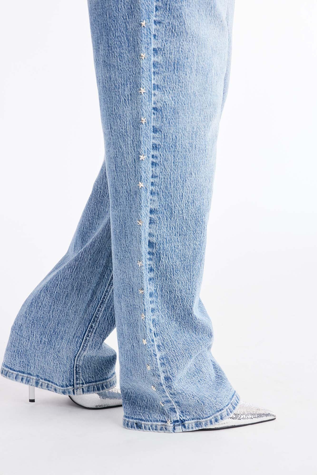 Available In Grey And Medium Wash. Straight Leg Jean 5 Pocket Stars Embellishment 10.5" Rise 32" Inseam Medium Stretch Disclaimer: Due To The Specialized Wash Process, Each Garment Is Unique. 99% Cotton 1% Spandex Imported California Proposition 65WARNING: Cancer and Reproductive Harm - www.P65Warnings.ca.gov.