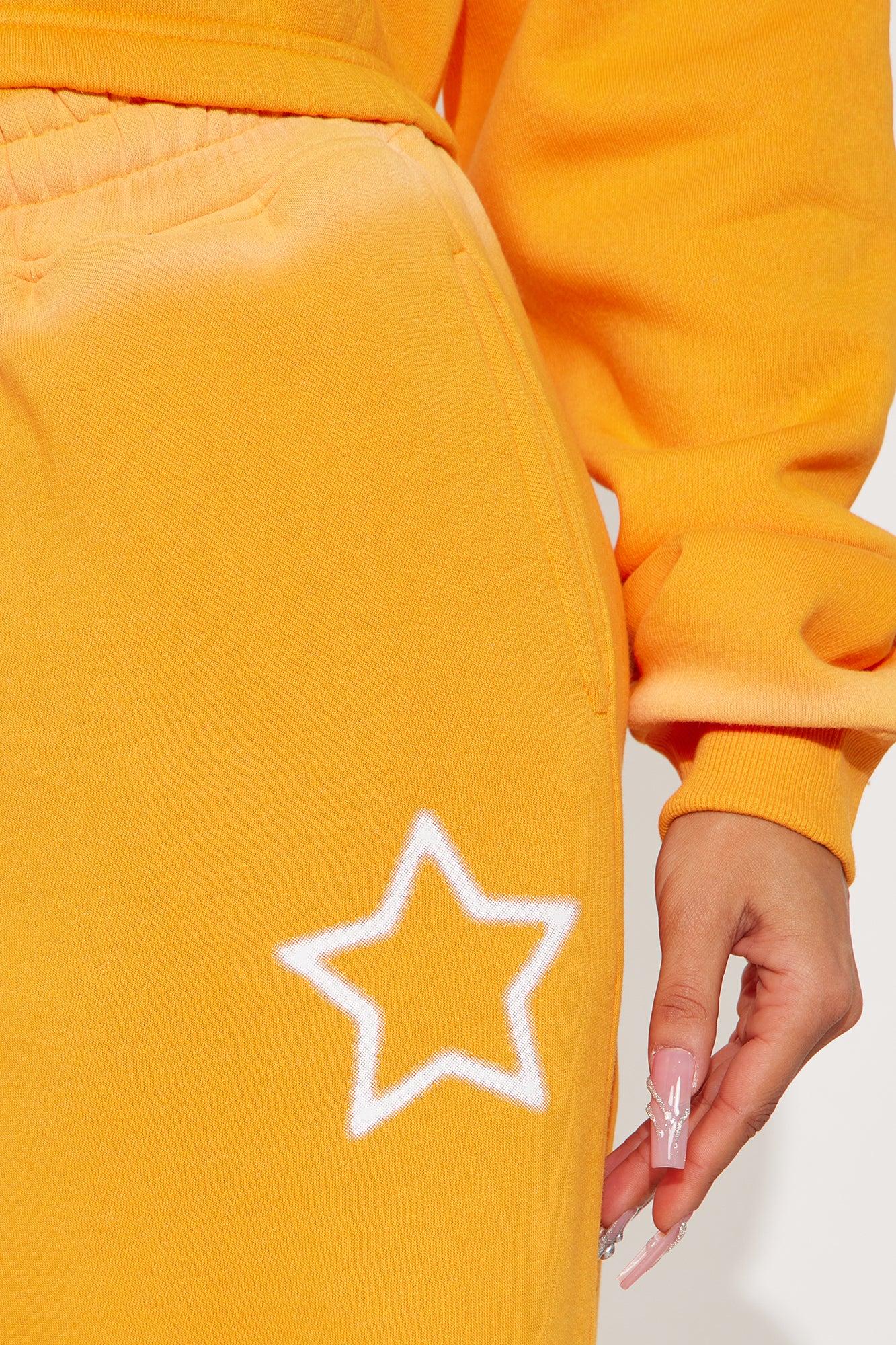 Available In Orange. 2 Piece Ensemble Sweatshirt Hoodie And Pant Set Stretch Long Sleeve Elastic Waistband Wide Leg Disclaimer: Due To The Printing Process A Difference In Saturation May Occur. Each Garment Is Unique. Self: 60% Cotton 40% Polyester Imported