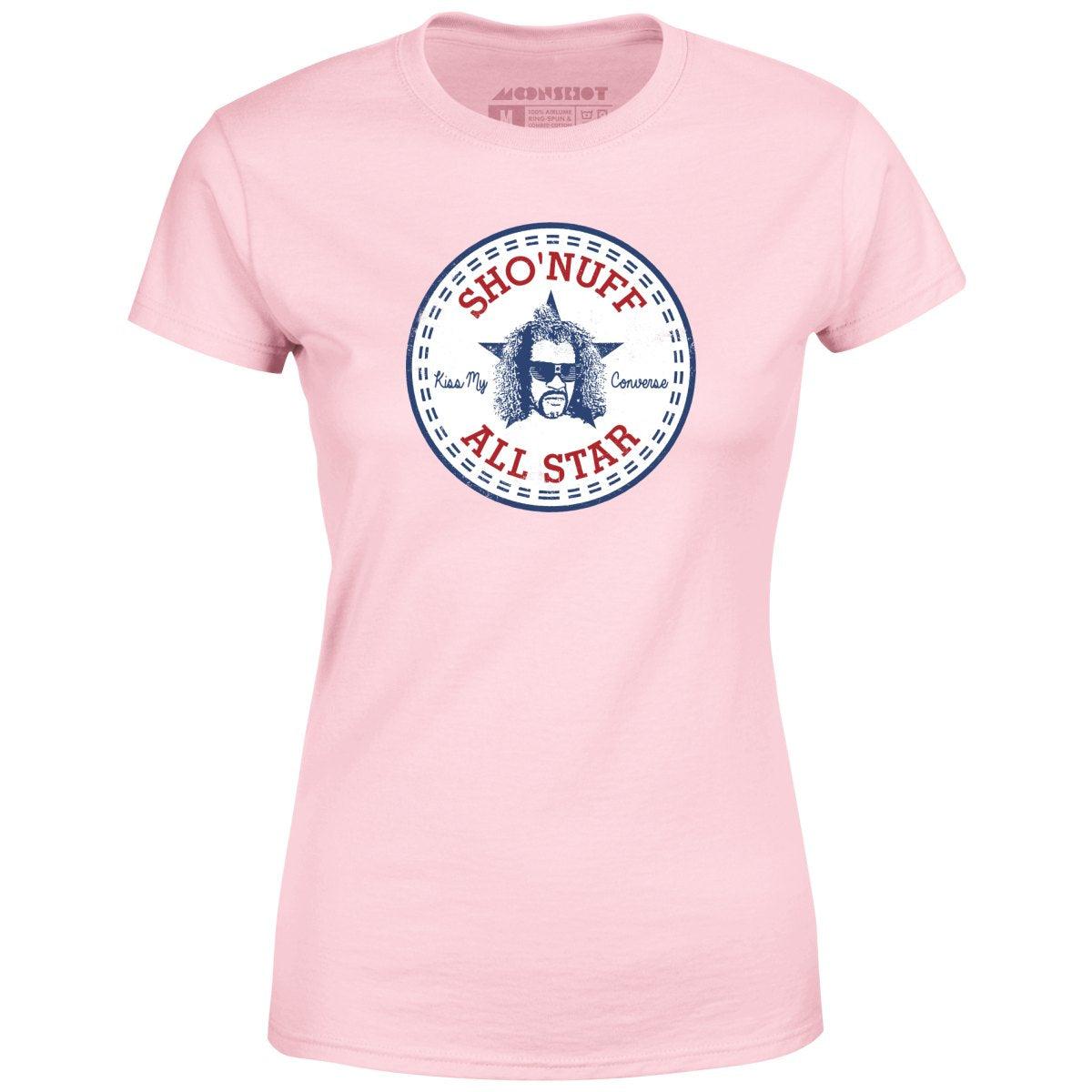 Sho'nuff All Star! A rad retro mashup of Sho'nuff from the 1985 cult classic martial arts movie, The Last Dragon. Printed on our super soft 100% ringspun & combed cotton women's T-Shirt. Or upgrade to our Luxury 52/48 cotton/poly vintage heather edition for an even softer classic look. We print & ship all of our high quality graphic tees in the USA.