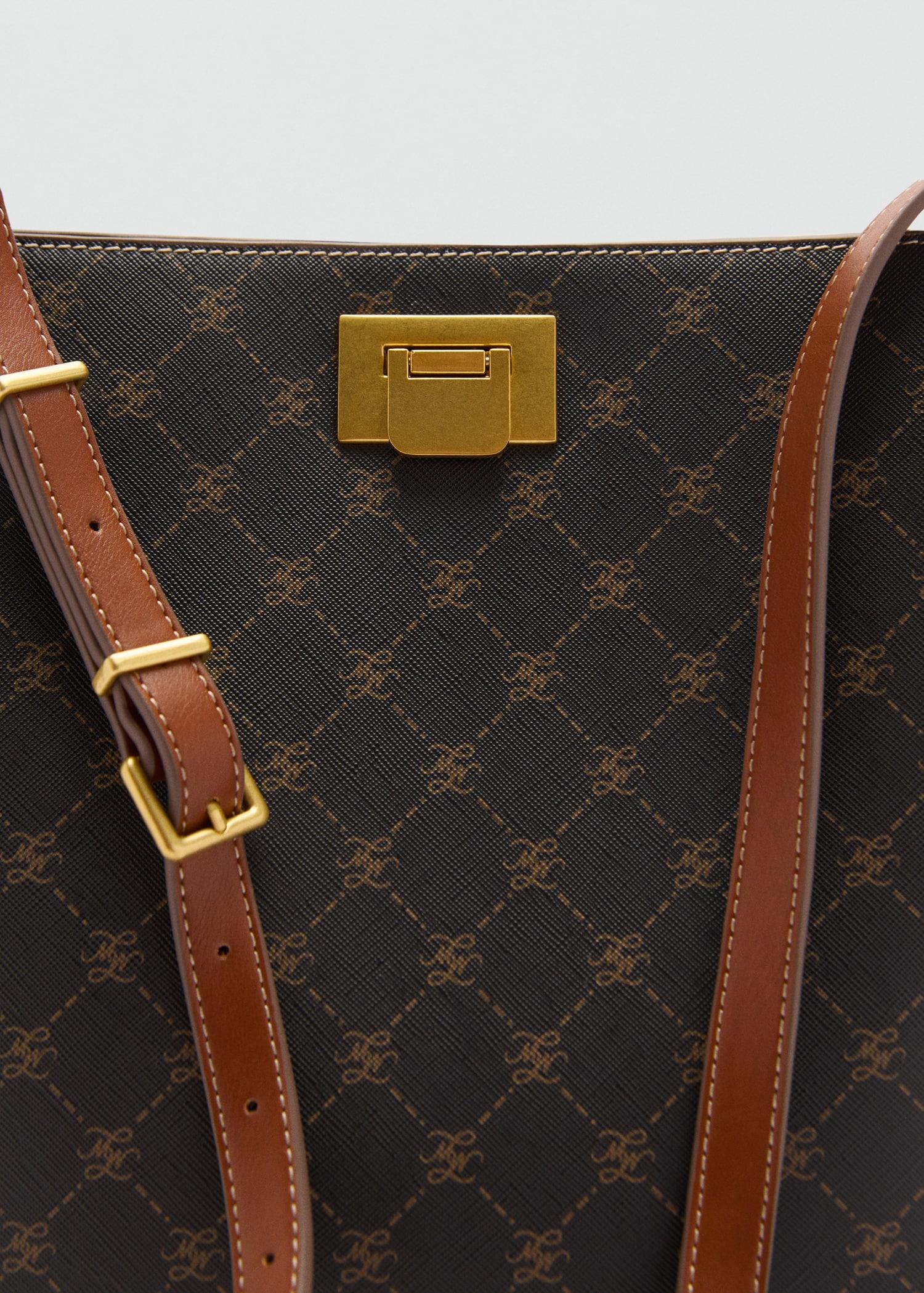 Large. Shopper style. Long adjustable strap. Magnetic metallic fastening. Zip fastening. Metallic detail. Inner lining. 9.06x11.02x4.33 in (Length x Height x Width)