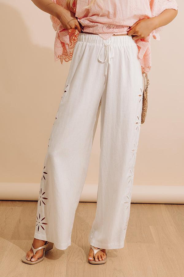 - Get all tied up in cuteness with the sweetest linen-blend pants! Their trendy embroidered floral cutouts give it a pretty pop of style.