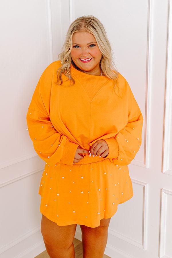 - Cozy cute meets trendy style with this adorable piece! Faux pearl embellished sleeves add a pop of glam to the flirty cropped sweatshirt. Perfect for a luxe casual look for your everyday outings. Show your team spirit with our vibrant clothing collection inspired by the bold colors of popular college football teams like the University of Tennessee Volunteers and the University of Texas Longhorns. - Unlined material - A crew cut neckline with a ribbed texture - Long, loose sleeves with faux pearl embellishment and ribbed cuffs - A relaxed silhouette that ends in an cropped unfinished hemline Measurements 1XL : Bust 64", Hip 62", Length 20", Sleeve Length 17", Waist 64". 2XL : Bust 66", Hip 64", Length 20.5", Sleeve Length 17.5", Waist 66". 3XL : Bust 68", Hip 66", Length 21", Sleeve Length 17.5", Waist 68".