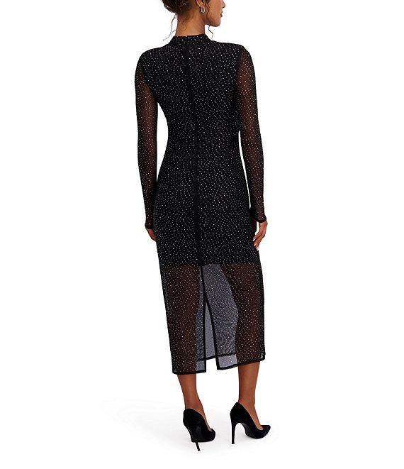 SIENA Long Sleeve Studded Mesh Midi Dress