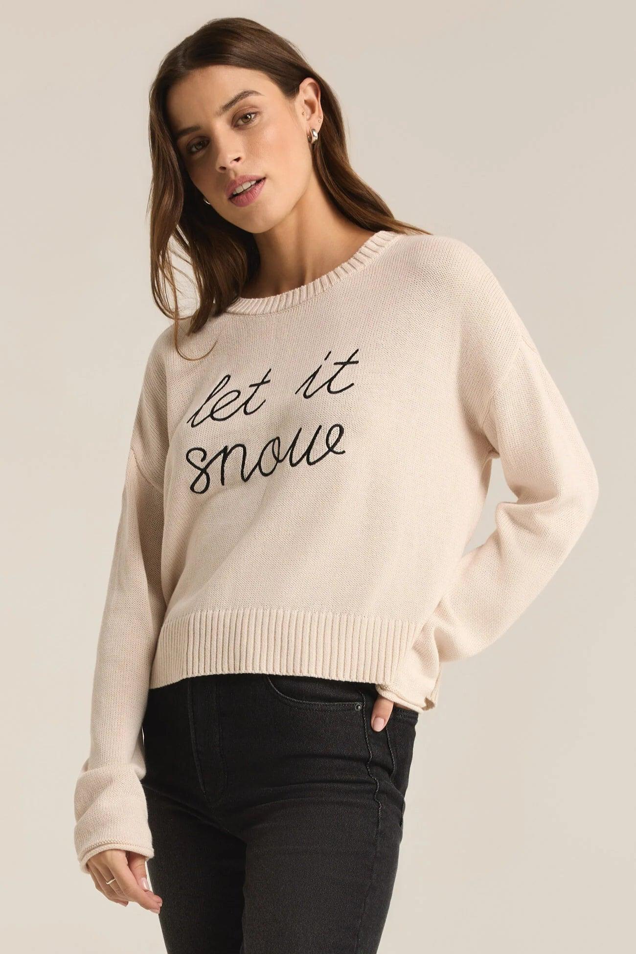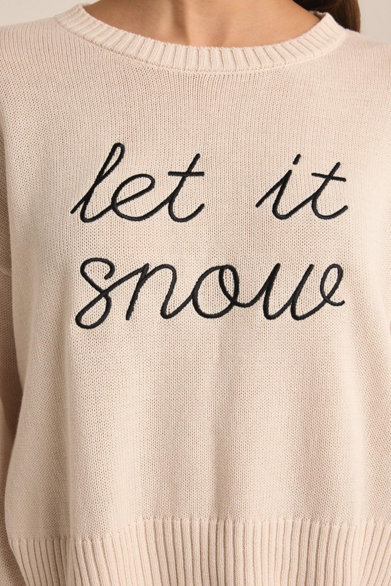 If cozy knits are your thing, you’ll love this ultra-soft sweater featuring the intarsia graphic "Let It Snow." Designed with a drapey, relaxed fit, full-length sleeves, and a below-the-waist length, it’s perfect for layering on those chilly days.