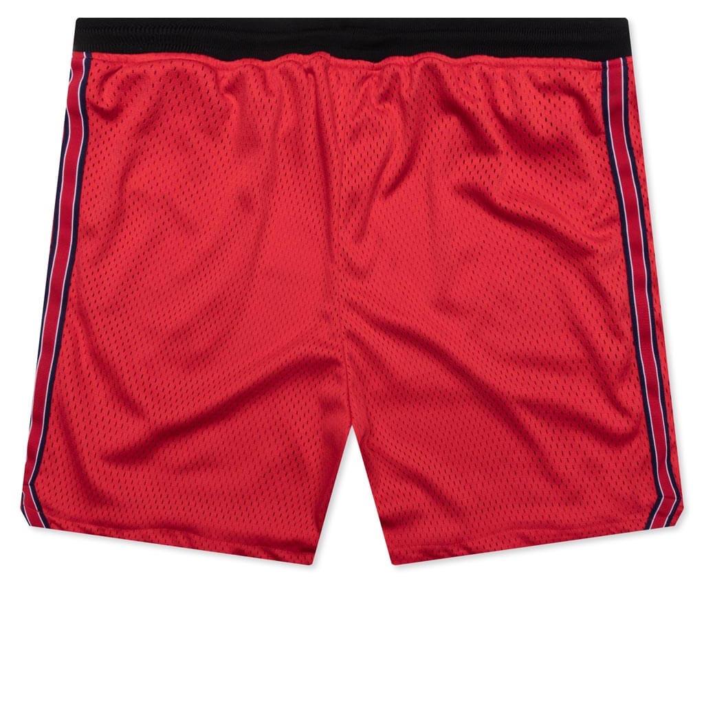 The John Elliott Sigma Shorts in Red are crafted from hoops-inspired mesh fabric, offering a relaxed and slightly cropped fit for a sporty look. They feature two-pocket styling, a ribbed drawstring waist, and double-taped side trim with vented cuffs. Fully lined and made from 100% polyester. 100% Polyester Two-pocket styling Ribbed drawstring waist Double-taped side trim Style no: C66M2360A