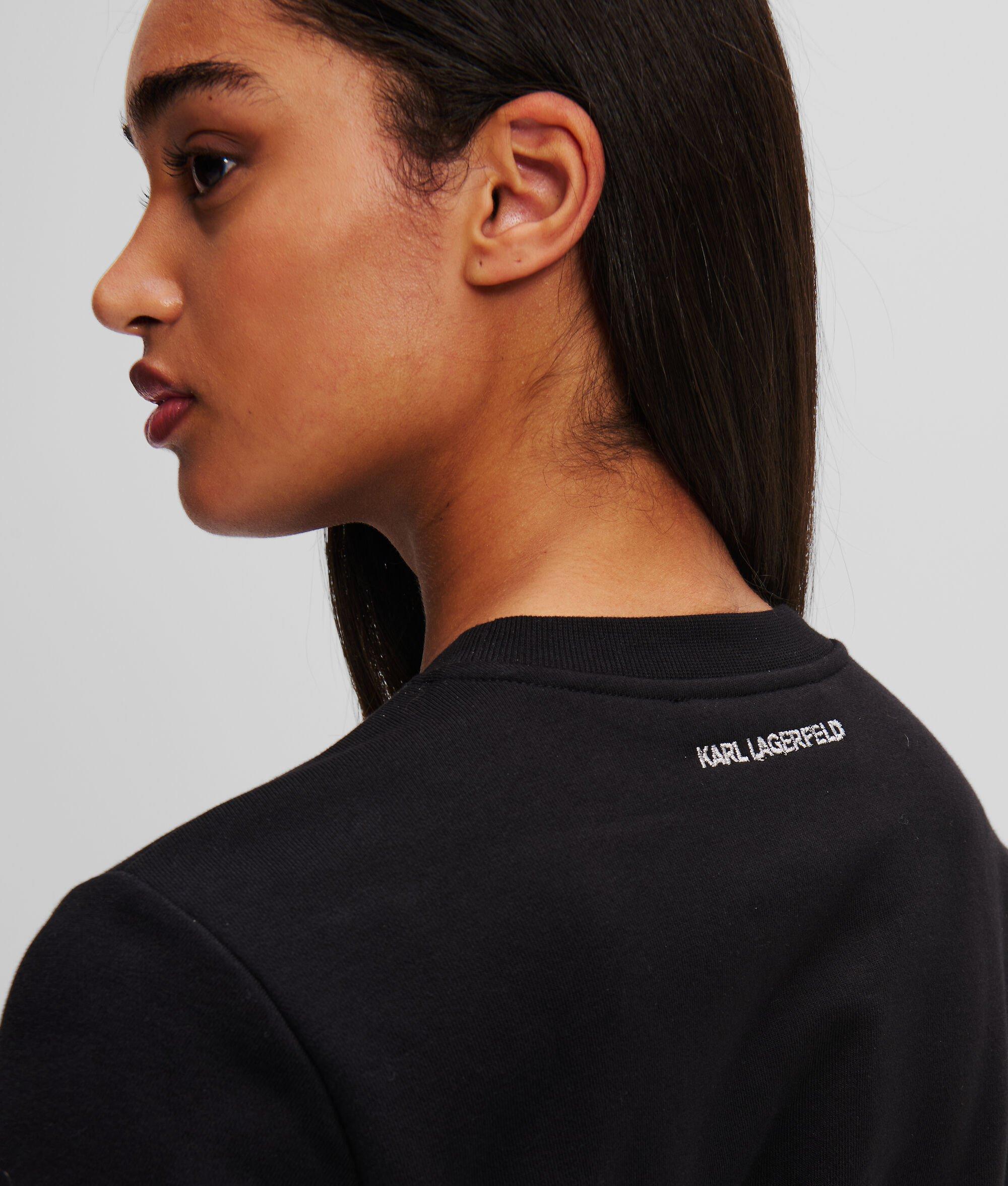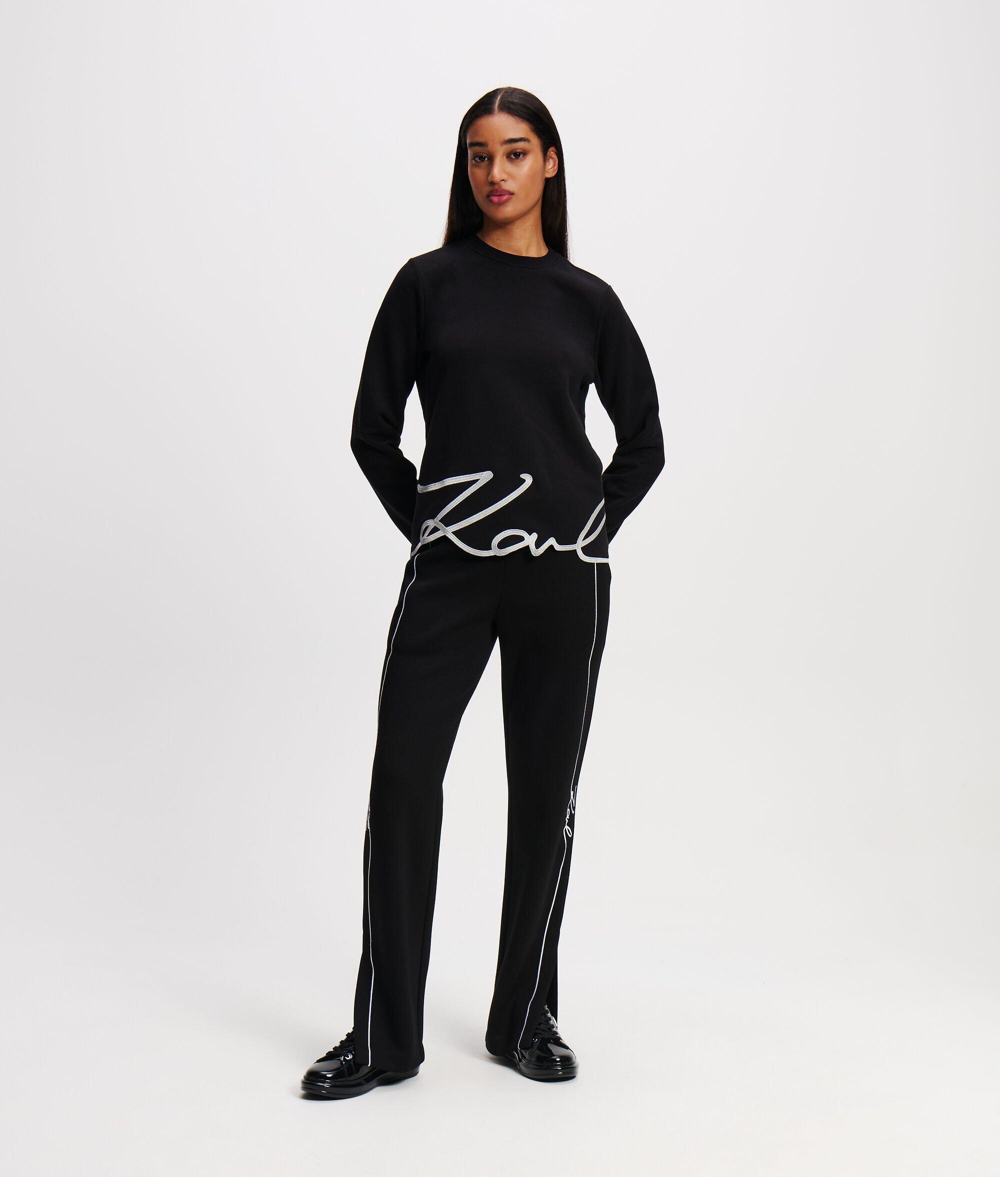Indulge in the refined comfort of this classic crew neck sweatshirt. Ribbed accents adorn the collar and sleeve cuffs, while the embroidered KARL Signature logo at the hemline adds a distinct mark of luxury.