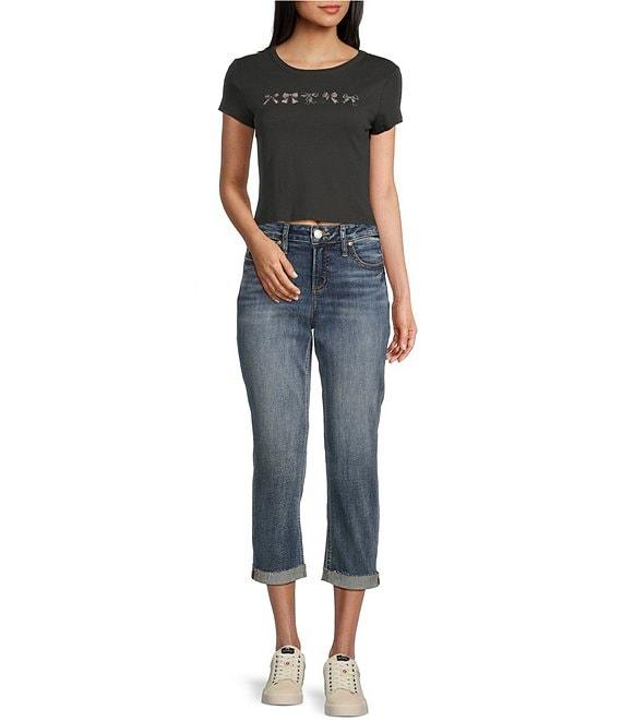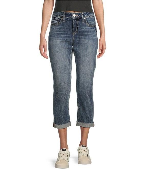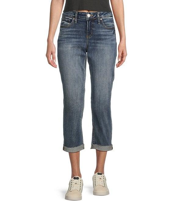 From Silver Jeans Co., these jeans feature: 5-pocket styling Extra room in the hips and thighs to perfectly hug your curves Eased waistband to keep the midsection comfy, preventing digging when sitting Cuffed, raw hemline Zip/button-front closure Belt loops Power Stretch denim for the highest level of stretch, great flexibility, shape retention and softness Cotton/elasterell/polyester/elastane Machine wash/tumble dry Imported.