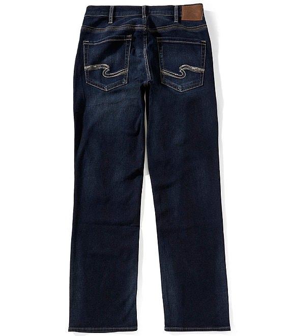 From Silver Jeans Co., these jeans feature: Mid rise Zip-front closure Belt loops 5-pocket jeans Full length Straight legs Cotton blend Machine wash/tumble dry Imported.