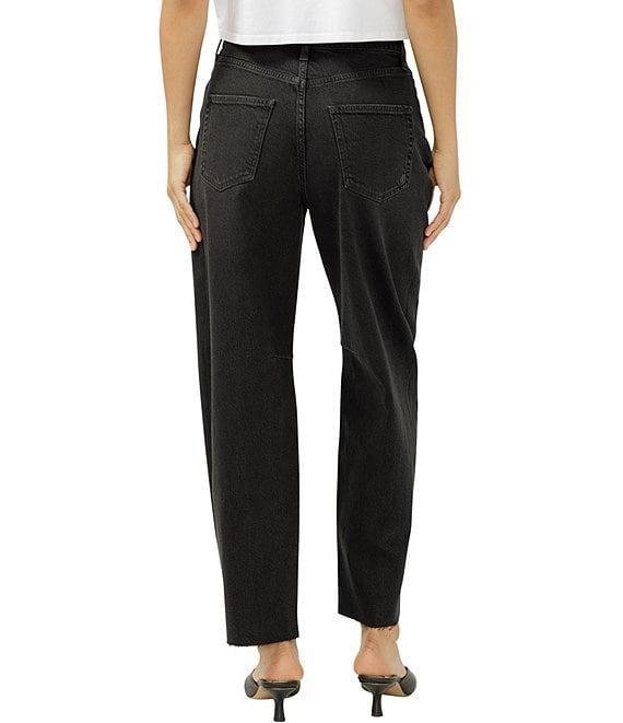 From Silver Jeans Co., these jeans feature: High-rise Slim fit Flattering slim fit through the hips and subtle curve at the legs Zip/button front closure Belt loops 2 front pockets (1 with coin pocket) 2 back pockets Full length Barrel legs Easy to style and made with stretch for all-day comfort Stretch denim that looks authentic with added stretch for comfort Cotton/elastane denim Machine wash/tumble dry Imported.