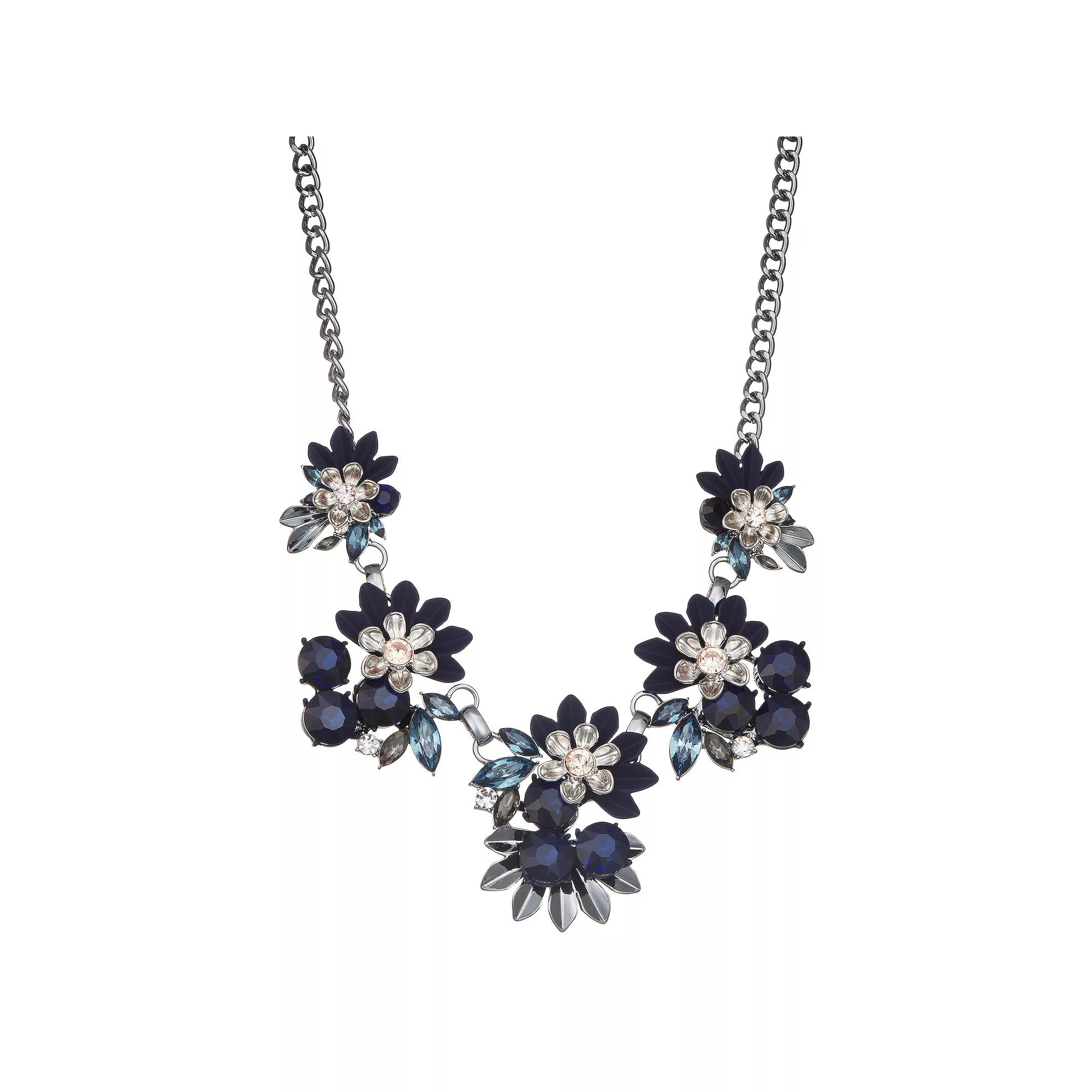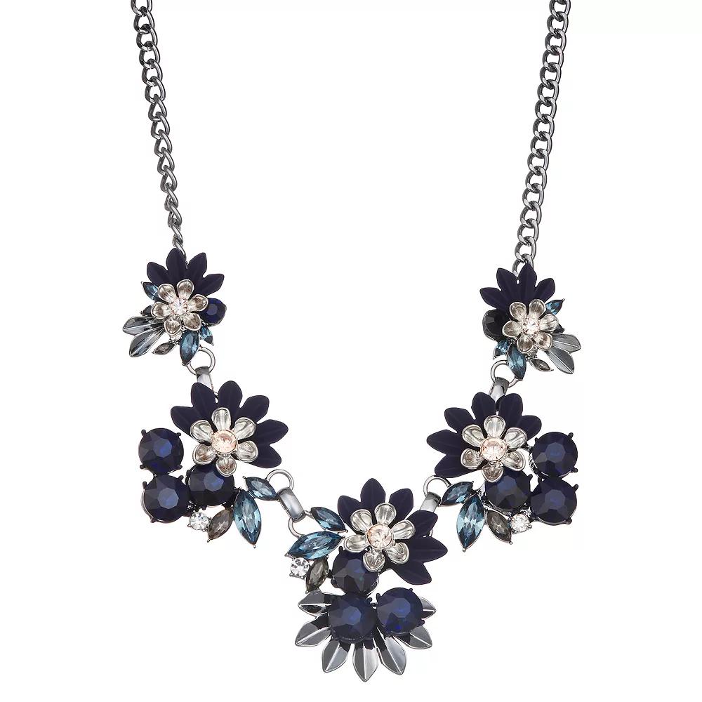 Accent your look with this Simply Vera Vera Wang black tone flower frontal necklace. Click on this JEWELRY & WATCHES GUIDE to learn about fit, styles, materials and more! Accent your look with this Simply Vera Vera Wang black tone flower frontal necklace. Click on this JEWELRY & WATCHES GUIDE to learn about fit, styles, materials and more! FEATURES Chain length: 17 in. Clasp: lobster-claw Nickel safe Material: 10% recycled steel, 50% recycled casting, 20% glass, 20% plastic Plating: black Finish: polishedRESPONSIBLE Contains at least 50% recycled metal Not appropriate for children 14 years old and younger. Size: One Size. Color: Blue. Gender: female. Age Group: adult.