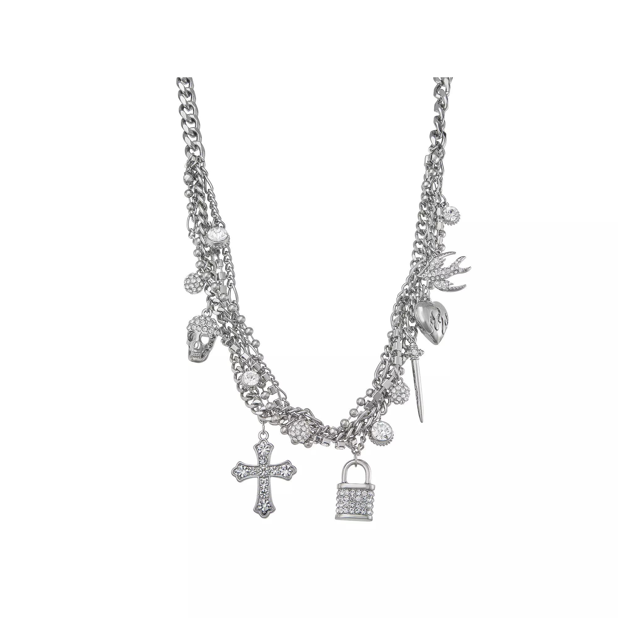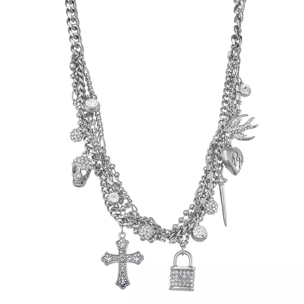 Accessorize in style with this Simply Vera Vera Wang Silver Tone Crystal Multi-Row Statement Charm Collar Necklace. Click on this JEWELRY & WATCHES GUIDE to learn about fit, styles, materials and more! Accessorize in style with this Simply Vera Vera Wang Silver Tone Crystal Multi-Row Statement Charm Collar Necklace. Click on this JEWELRY & WATCHES GUIDE to learn about fit, styles, materials and more! FEATURES 1.37-in. drop Chain length: 18 in. Clasp: lobster-claw Nickel safe Metal: alloy Plating: silver tone Finish: polished Imported Crystal accentsRESPONSIBLE Global Recycled Standard Certified Certification no. ITS-E02547-RCS-00094000 Contains recycled materials 20% recycled zinc, 5% recycled brass, 30% recycled steel, 45% glass Size: One Size. Color: Clear. Gender: female. Age Group: adult.