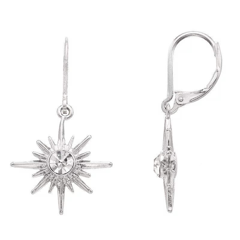 Add a touch of celestial style to your look with these starburst earrings. Add a touch of celestial style to your look with these starburst earrings. EARRING DETAILS Length: 1.5 in. Closures: leverback Plating: silver tone Not appropriate for children 14 years old and younger. Size: One Size. Gender: female. Age Group: adult.