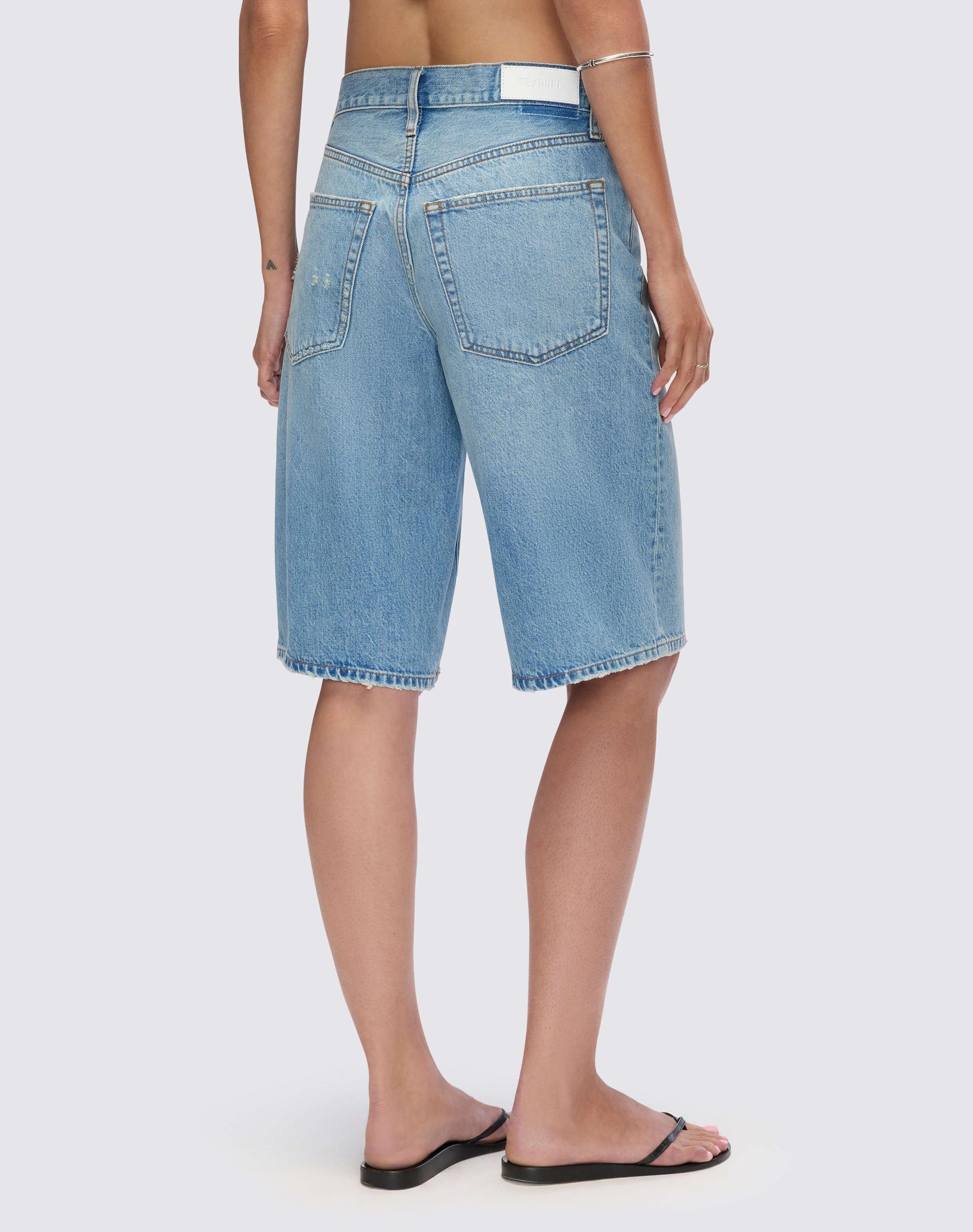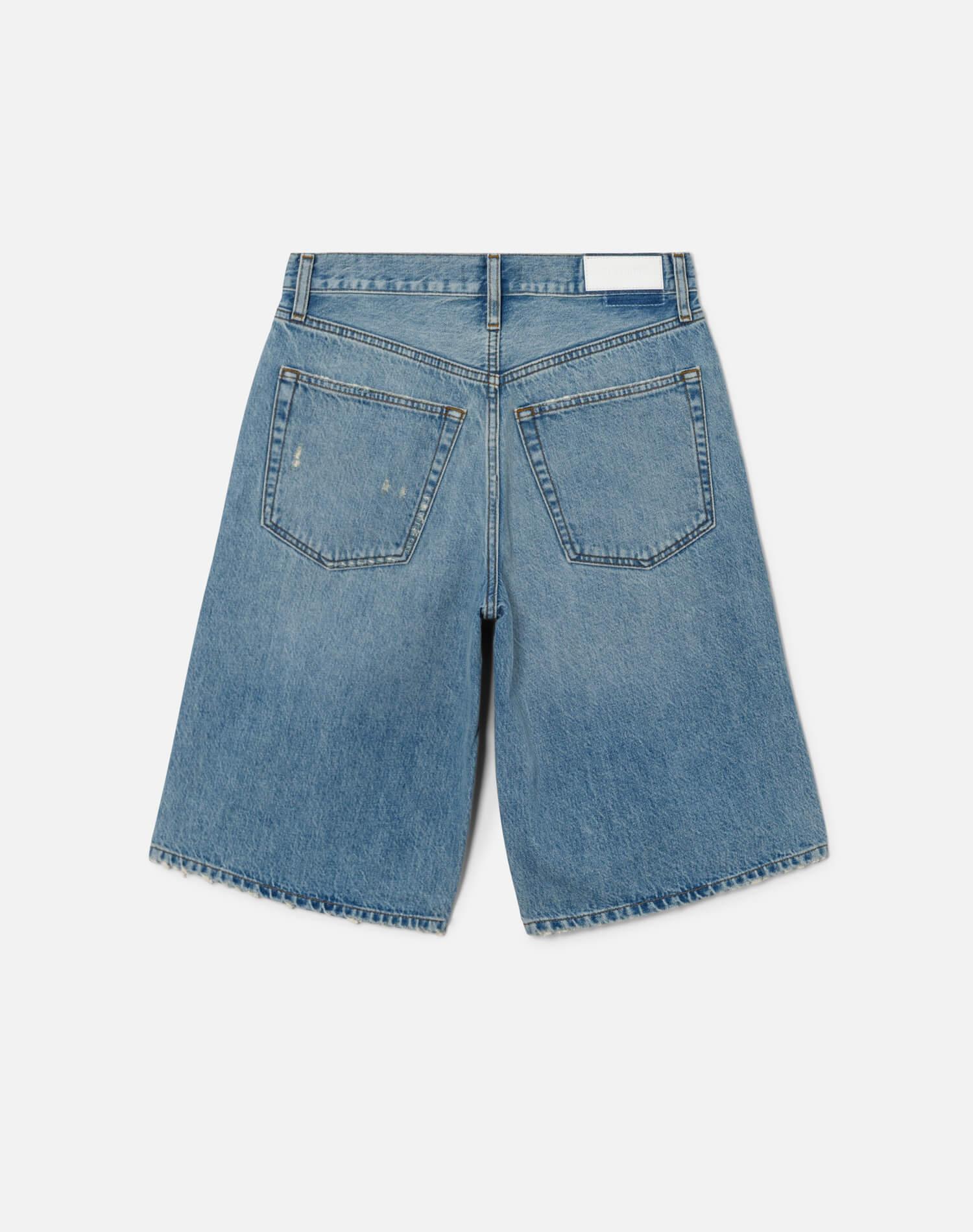 The Skater Short is our take on an oversized boyfriend short. Finished in Italian rigid indigo denim with a mid-rise waist, a wide leg, and an over-the-knee inseam.