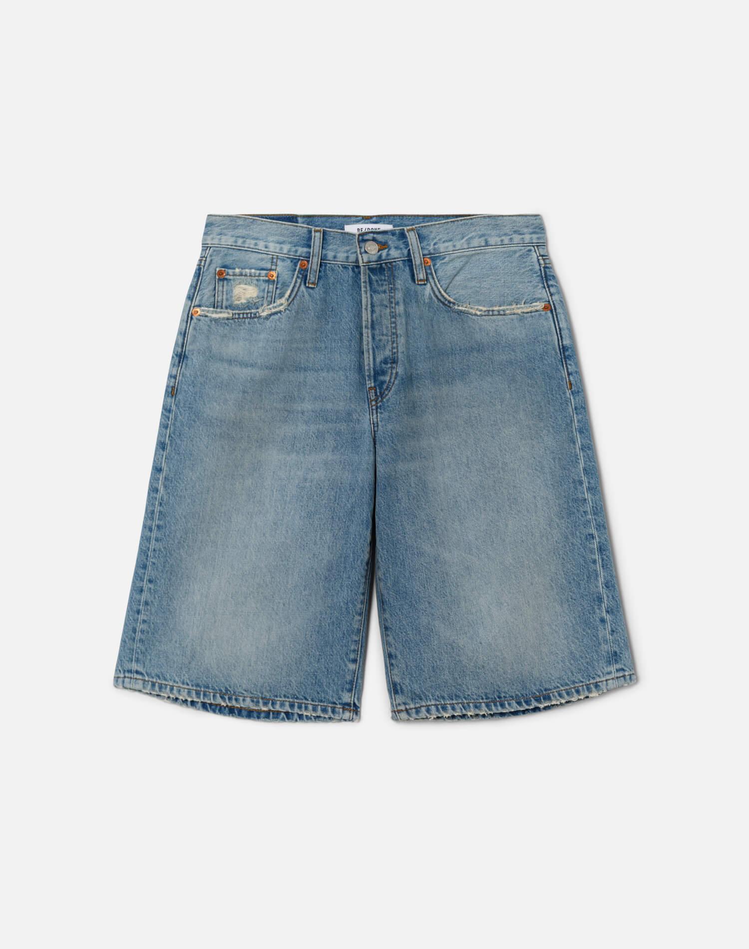 Fit: Mid-rise fit sitting just above the hip bones. Wide and loose throughout with an over-the-knee length.