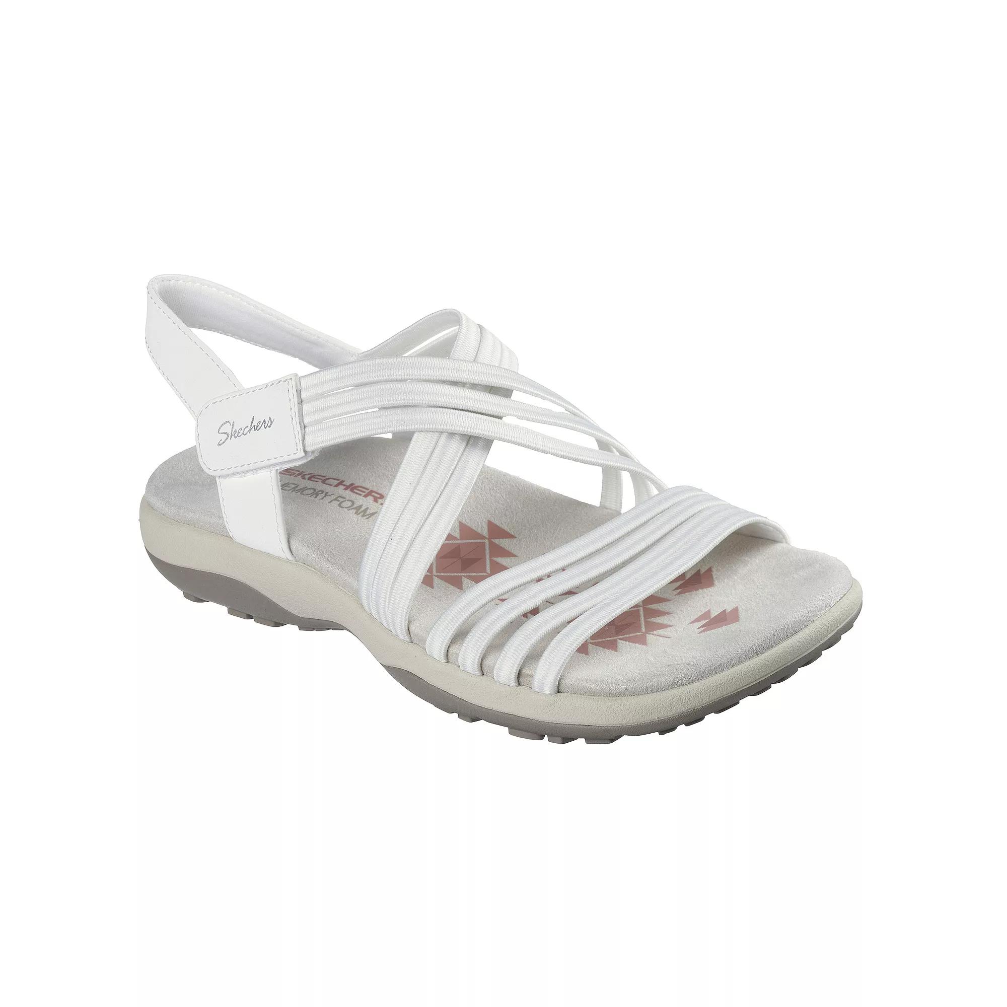 Take a step in laid-back style and comfort with these Skechers Reggae Slim – Sunnyside 2.0 sandals. Click this FOOTWEAR GUIDE to find the perfect fit and more! - https://www.kohls.com/feature/shoesizeguide.jsp. FEATURES: Adjustable Criss Cross Multi Strap with stretch Mitobuck upper, Skechers contoured Memory Foam comfort footbed, Supportive shock-absorbing Reggae Slim midsole, Sporty casual strappy slingback slide sandal design, Flexible rubber traction outsole, Crafted with 100% vegan materials. DETAILS: Synthetic upper, Polyester lining, Rubber outsole, Open toe, Pull-on, Foam footbed, Treaded outsole, 1.00-in. heel height, Machine Washable: Wash on cold and air dry. Size: 5. Color: White. Gender: female. Age Group: adult.