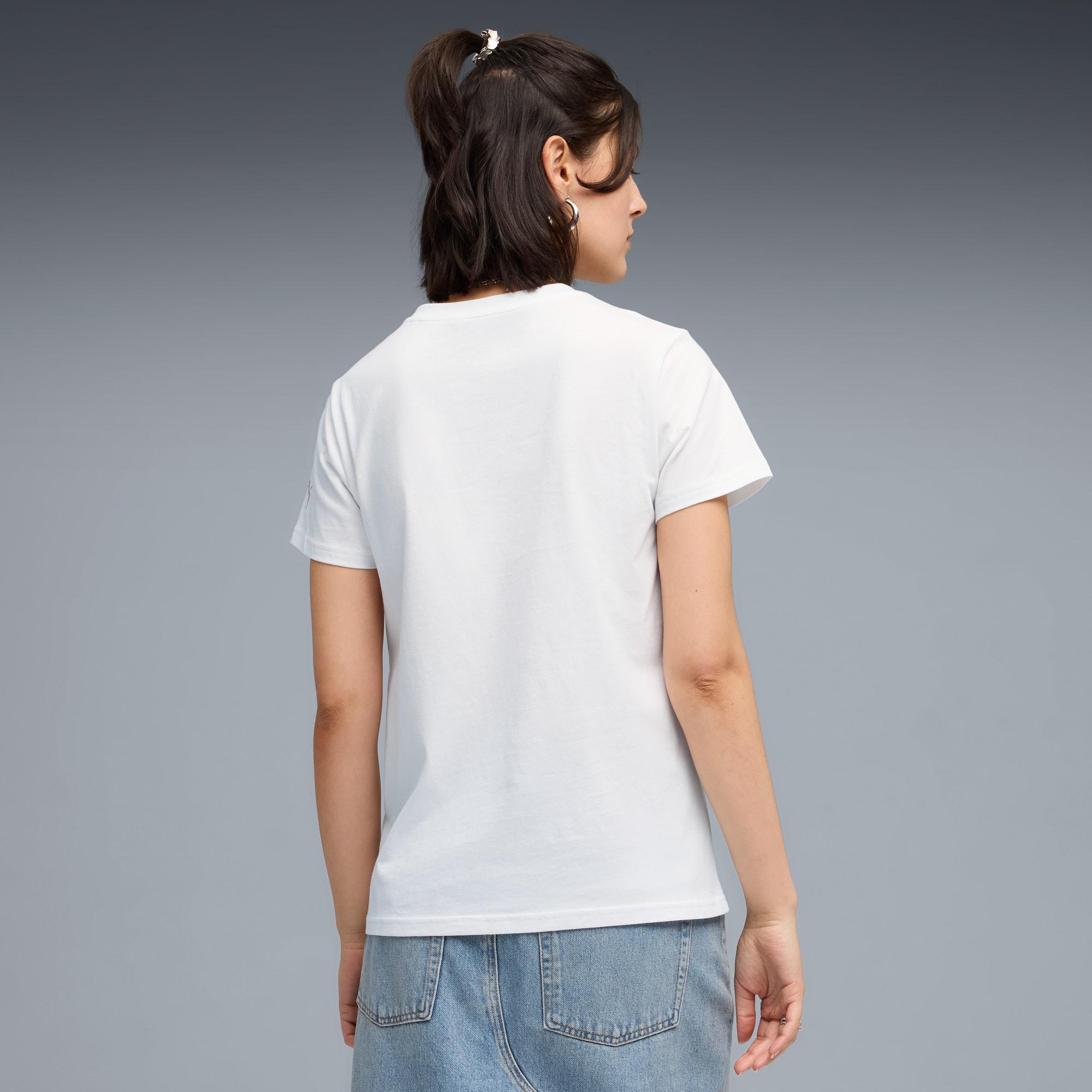 descriptionAdd a touch of easy charm to your day with this regular-fit tee. Made from soft jersey fabric, it showcases a sketched floral graphic that adds a fresh feel to your wardrobe. Whether it's brunch plans or casual errands, PUMA keeps your style on point.Style: 689820_01Color: PUMA Whitemeasure & sizeModel informationModel is 5' 8" tall and is wearing size S.features & benefitsMade with at least 20% recycled materialsdetailsFit: RegularMain Material: Single jerseyNeck: CrewShort sleevesmaterials & careMaterial informationShell: 100% cottonRib: 70% cotton, 30% polyesterCare instructionsDo not dry cleanUse detergent for coloursWash and iron inside outExclusive of DecorationDo not iron printWash with similar colours
