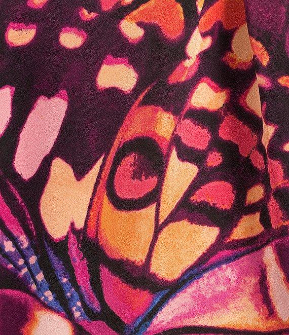 From Skies Are Blue, this dress features: Butterfly print Split v-neckline Long sleeves Pullover construction Approx. 35.5" length Polyester Hand wash Imported.