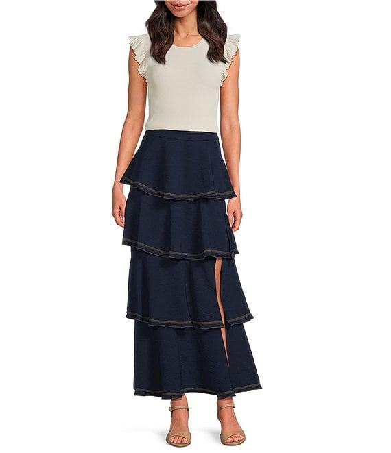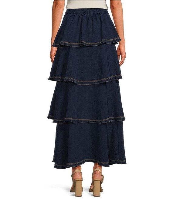 Skies Are Blue Contrast Stitch Ruffle Tiered Maxi Skirt