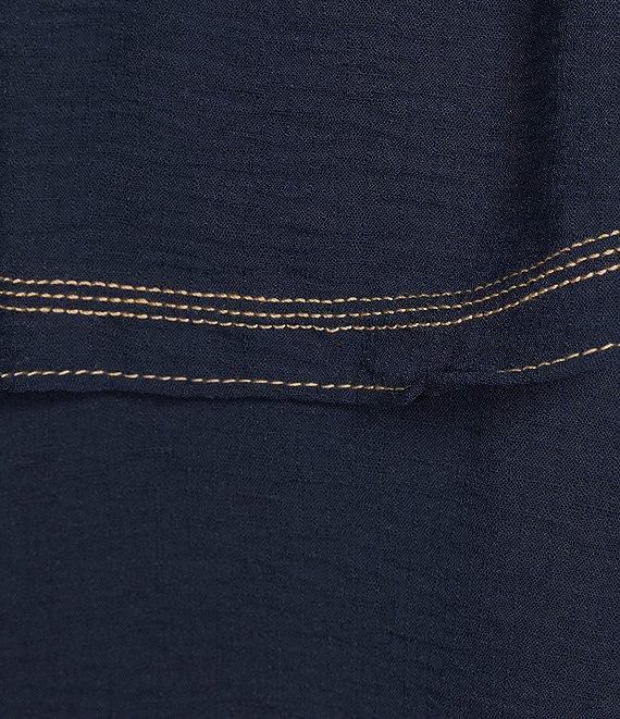 From Skies Are Blue, this skirt features: Woven fabrication Contrast stitch Pull-on construction Side slit Tiered hemline Approx. 39" length Polyester Hand wash Imported.