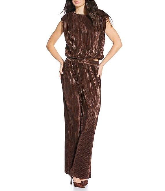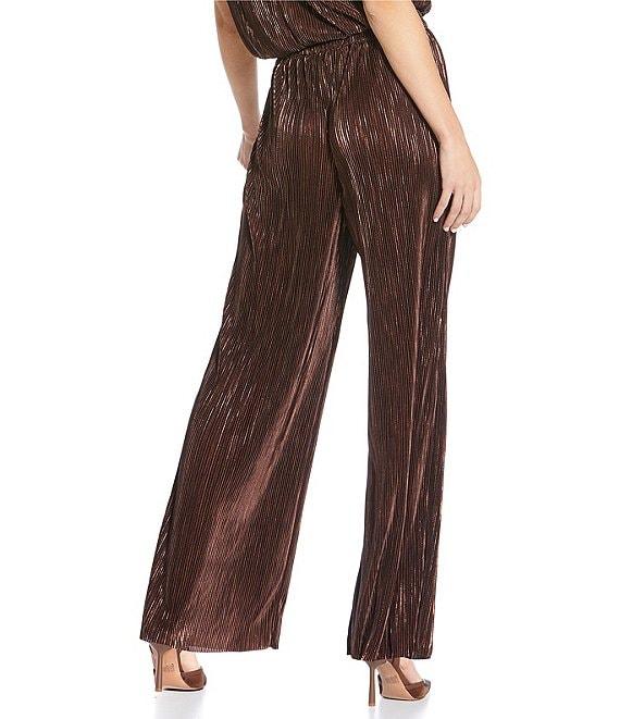 Skies Are Blue Metallic Pleated Wide Leg Coordinating Pants