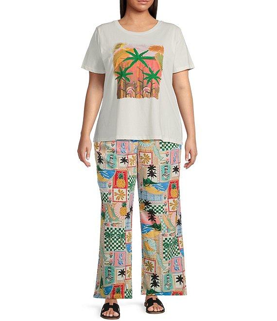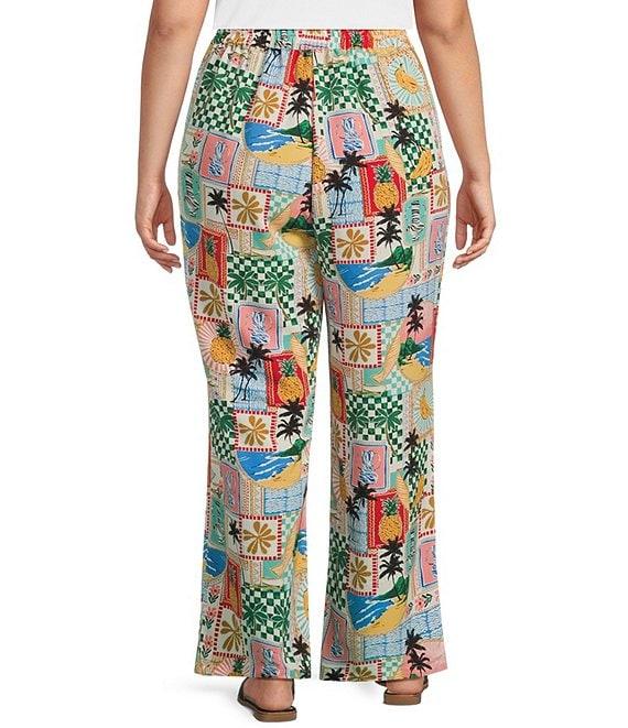 Skies Are Blue Plus High Rise Postcard Printed Coordinating Wide Leg Pants
