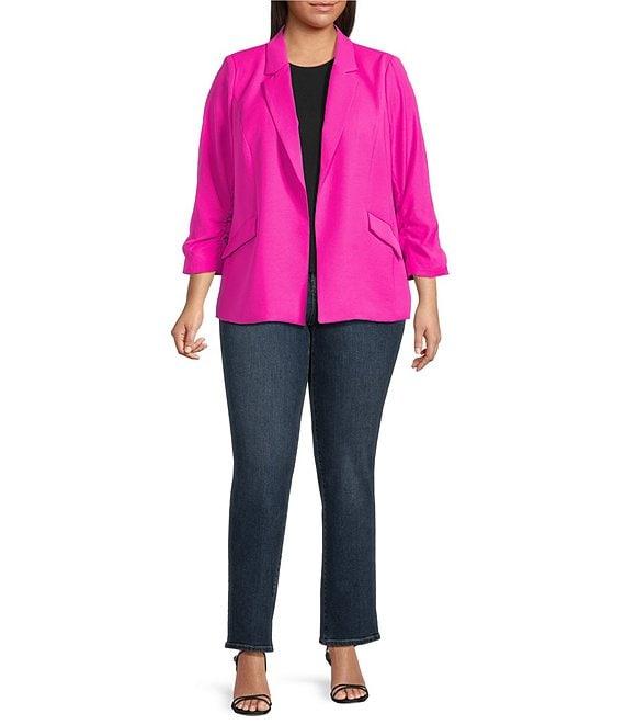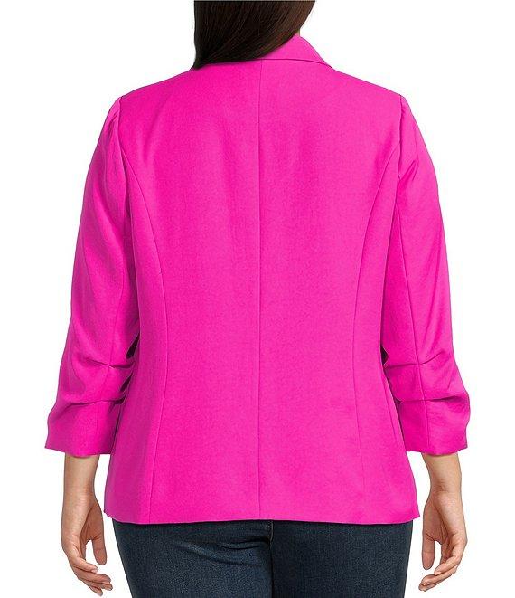 Skies Are Blue Plus Size Notch Lapel Shirred 3/4 Sleeve Open Front Coordinating Statement Blazer