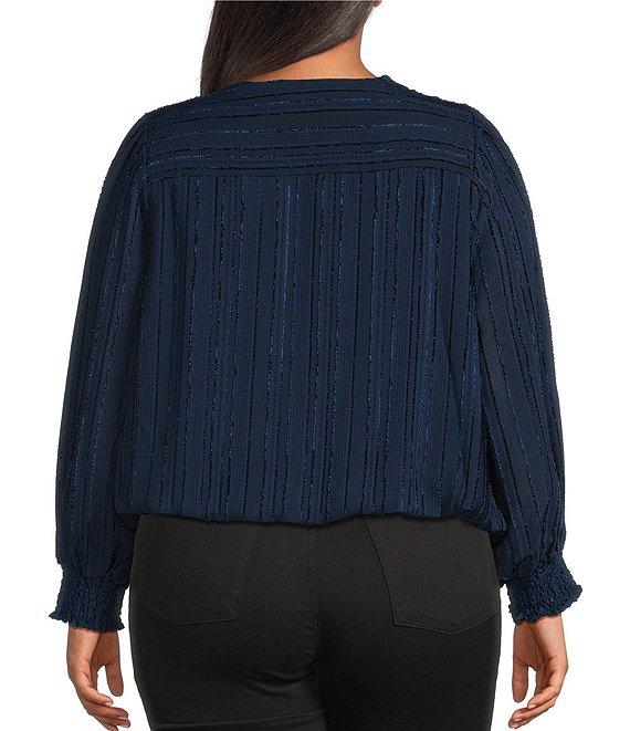 Skies Are Blue Plus Size Tie V-Neck Long Sleeve Textured Chiffon Blouse