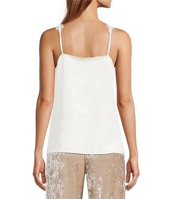 Skies Are Blue Satin V-Neck Sleeveless Delicate Lace Trimmed Cami