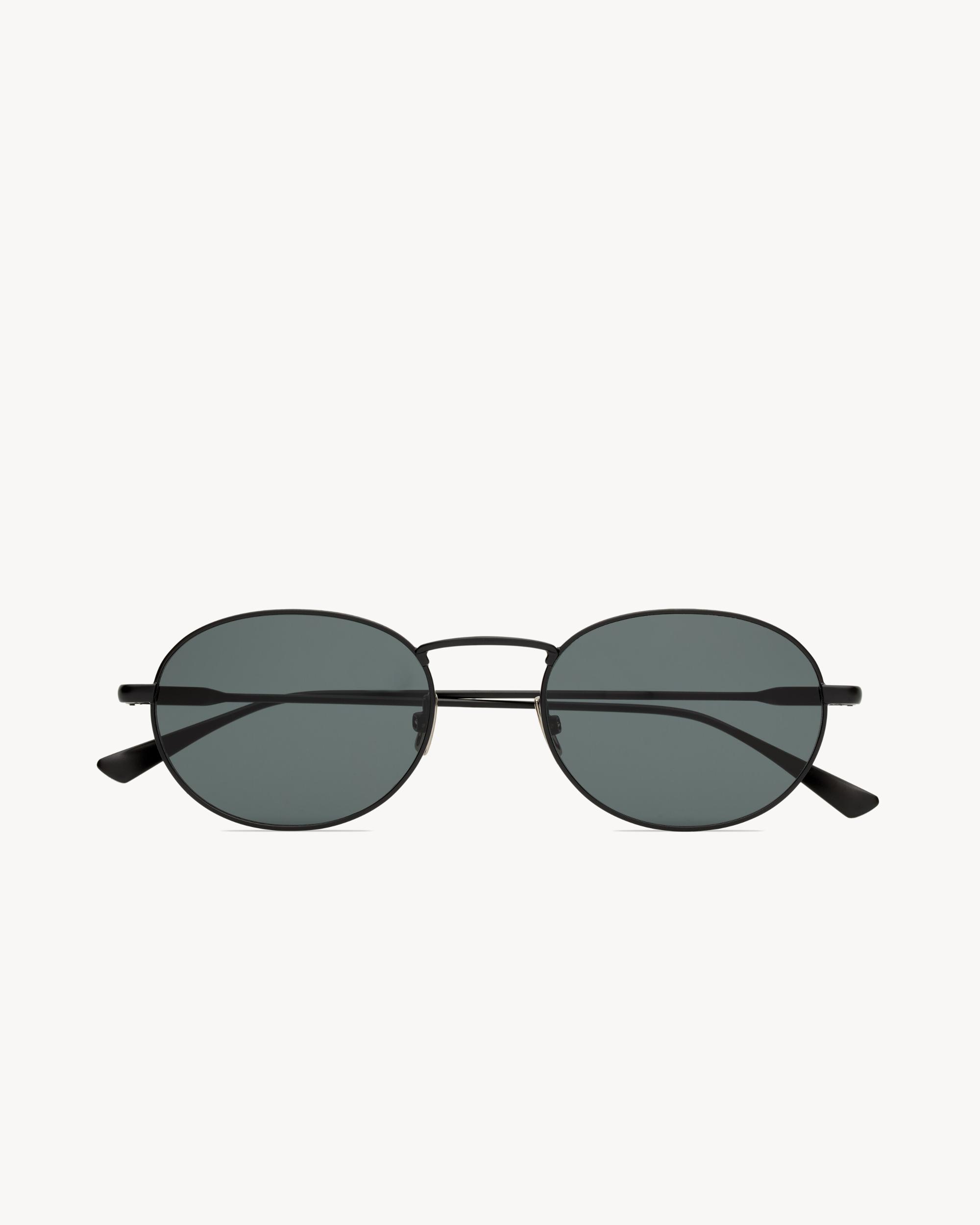 sunglasses with round metal frames and nylon lenses.