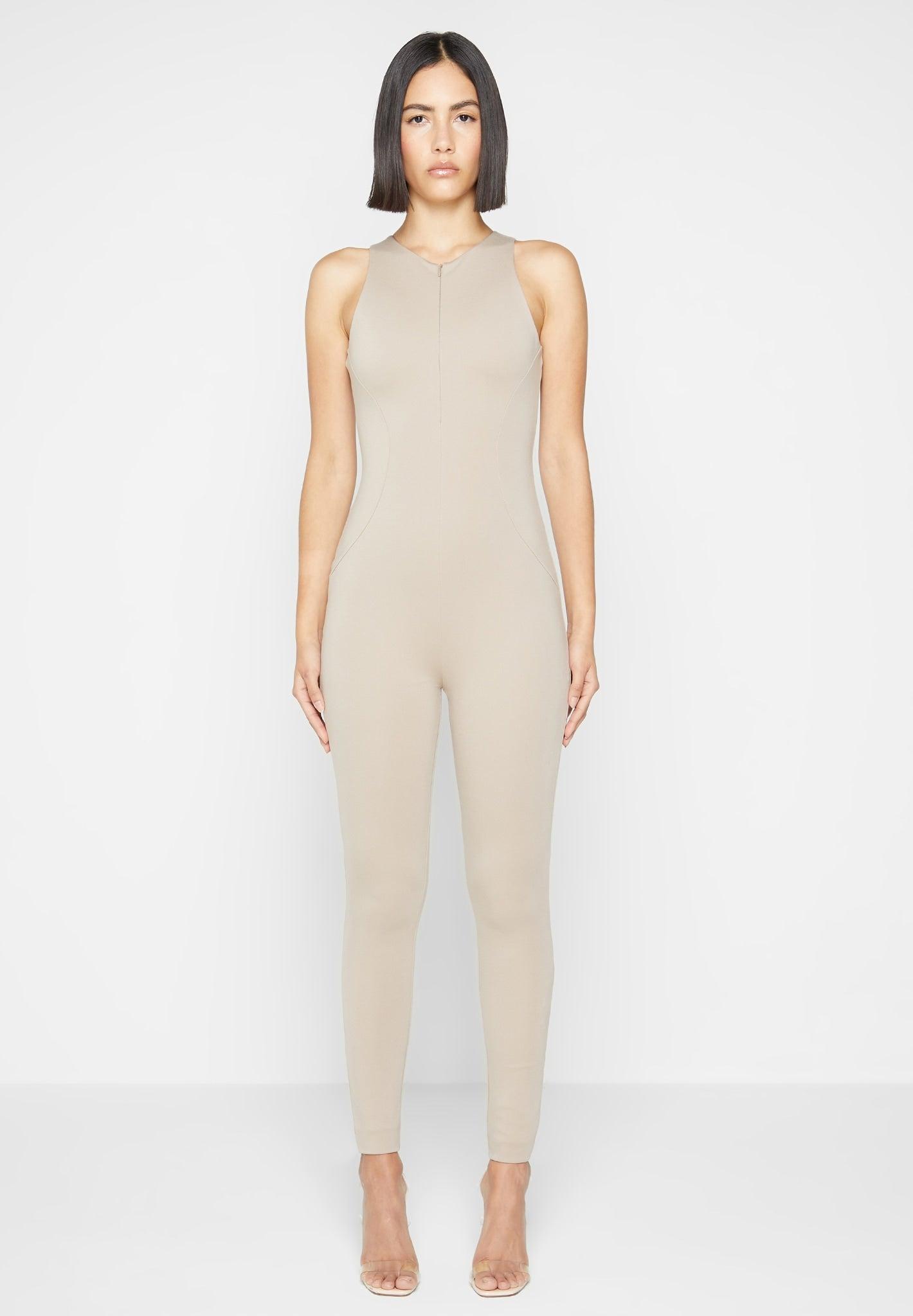 Make a statement in the Éternelle Jumpsuit. The sleeveless design provides a flattering silhouette with a crew neckline. Crafted from comfortable fabric, it's the perfect piece to take you from day to night. Sleeveless Jumpsuit Silhouette Signature Cinching Bandage Fabric Crew Neckline Contour Lines Invisible Zip at Front Invisible Zip at Back Silicone Manière De Voir Eiffel Plaque 61% Viscose, 39% Nylon / 90% Polyester, 10% ElastaneAlways check the care label for wash instructions.