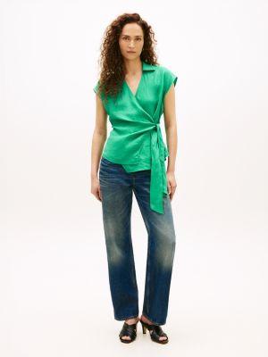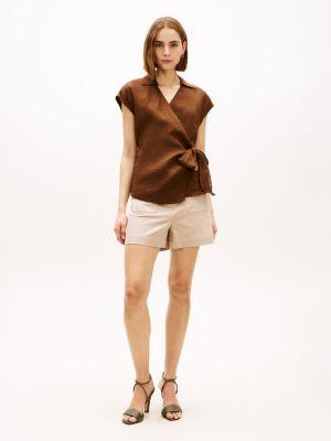 Tommy Hilfiger women's shirt. Our sleeveless top is made from yarn-dyed linen for rich color and a breathable feel. Designed in a functional wrap silhouette with a spread collar and side tie, it's sure to become a regular player in your casual yet polished wardrobe rotation.