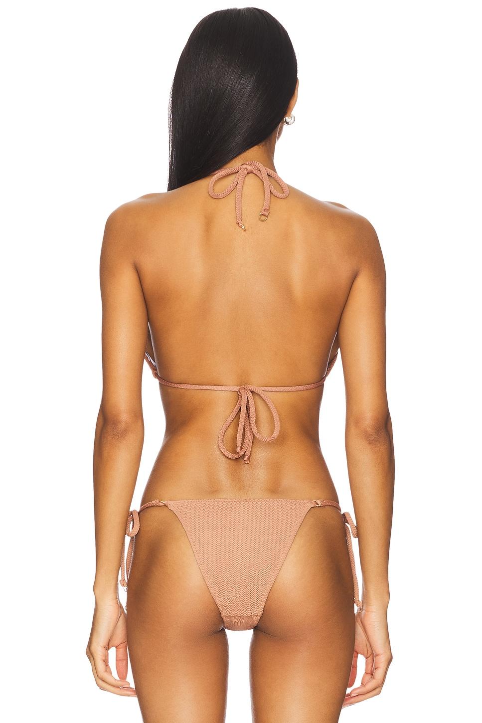 Self: 95% nylon, 5% elastaneLining: 88% recycled nylon, 12% elastane. Hand wash. Halterneck and back tie closures. Detachable cup padding. Texturized jersey fabric. Item not sold as a set. Made in China. Revolve Style No. SEAF-WX718. Manufacturer Style No. 31298-861.