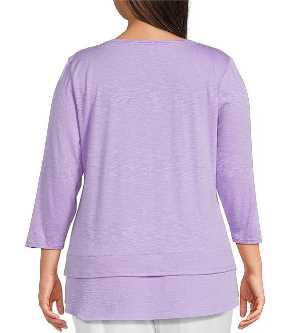 Slim Factor by Investments Plus Size Chloe V-Neck 3/4 Sleeve Mixed Media Top