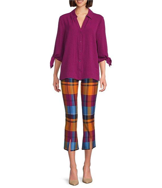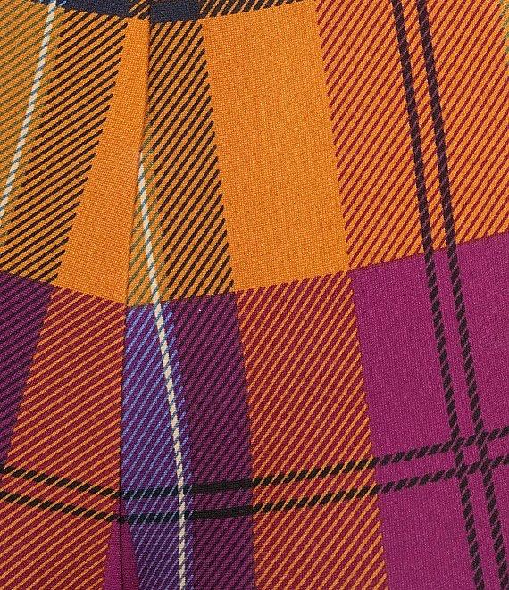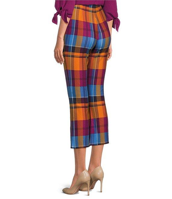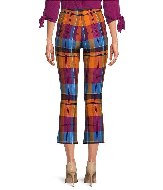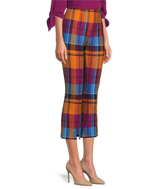 Slim Factor by Investments Ponte Knit Multi Plaid No Waist Kick Flare Crop Split Hem Pants