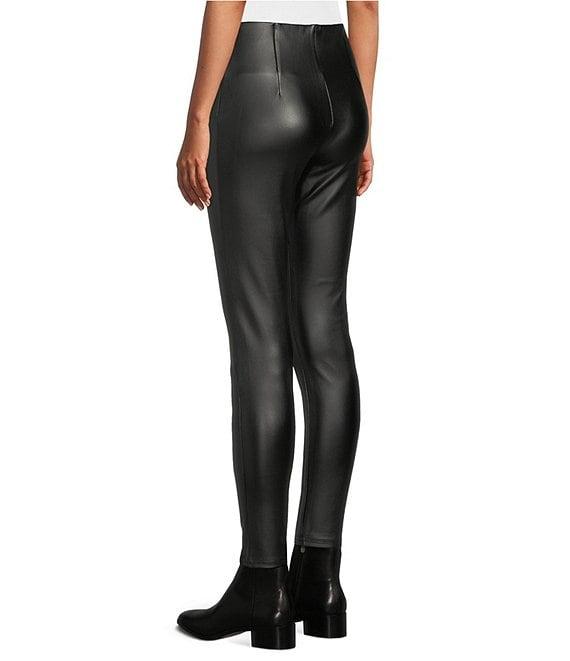 From Slim Factor by Investments, these leggings feature: Coated ponte knit fabrication 4-way stretch fabric provides comfort all-day Elastic waistband helps to slim and flatter the body Back yoke helps to lift and shape your curves Gentle compression that slims, smooths, and elongates the leg Pull-on construction Approx. 27" inseam Rayon/nylon/spandex Hand wash Imported.